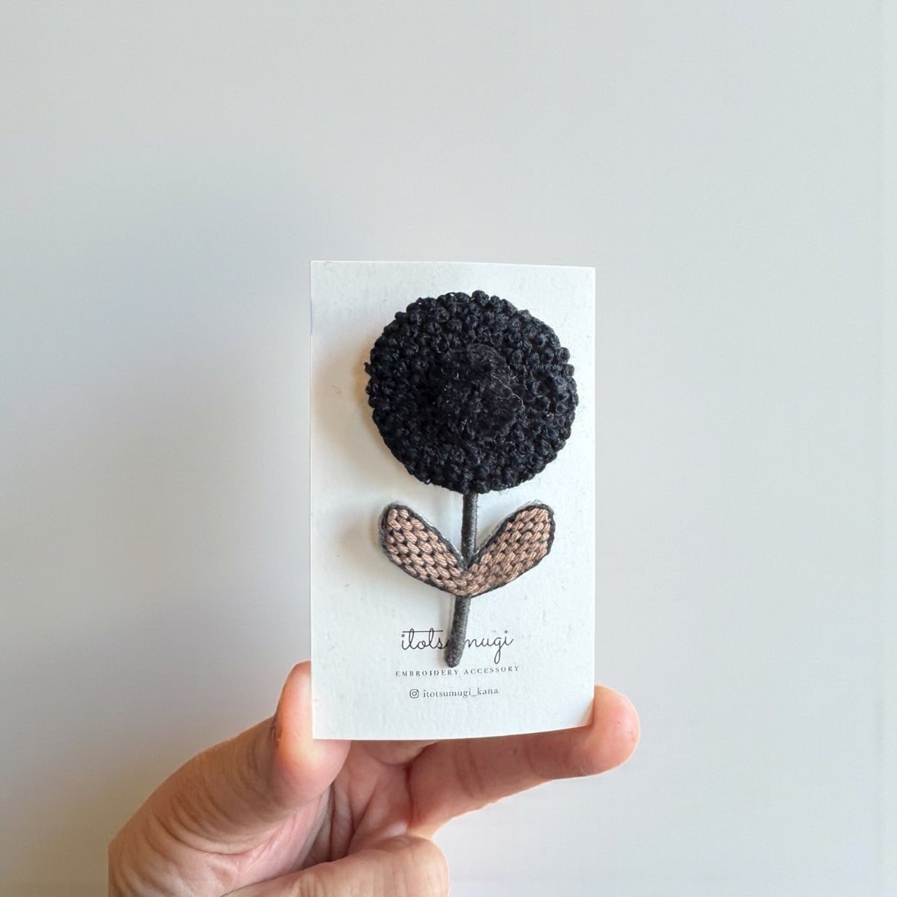 ブランド itotsumugi お花ブローチ 茎はワイヤーに糸を巻いているので しっかりしてます とても繊細で綺麗な手刺繍です 4cm×7cm