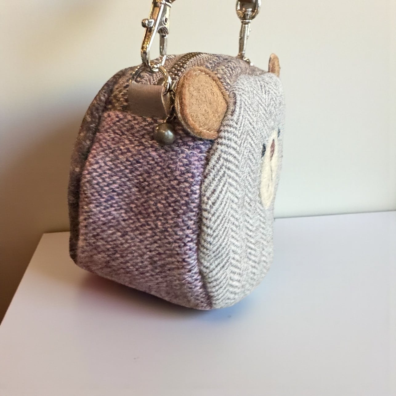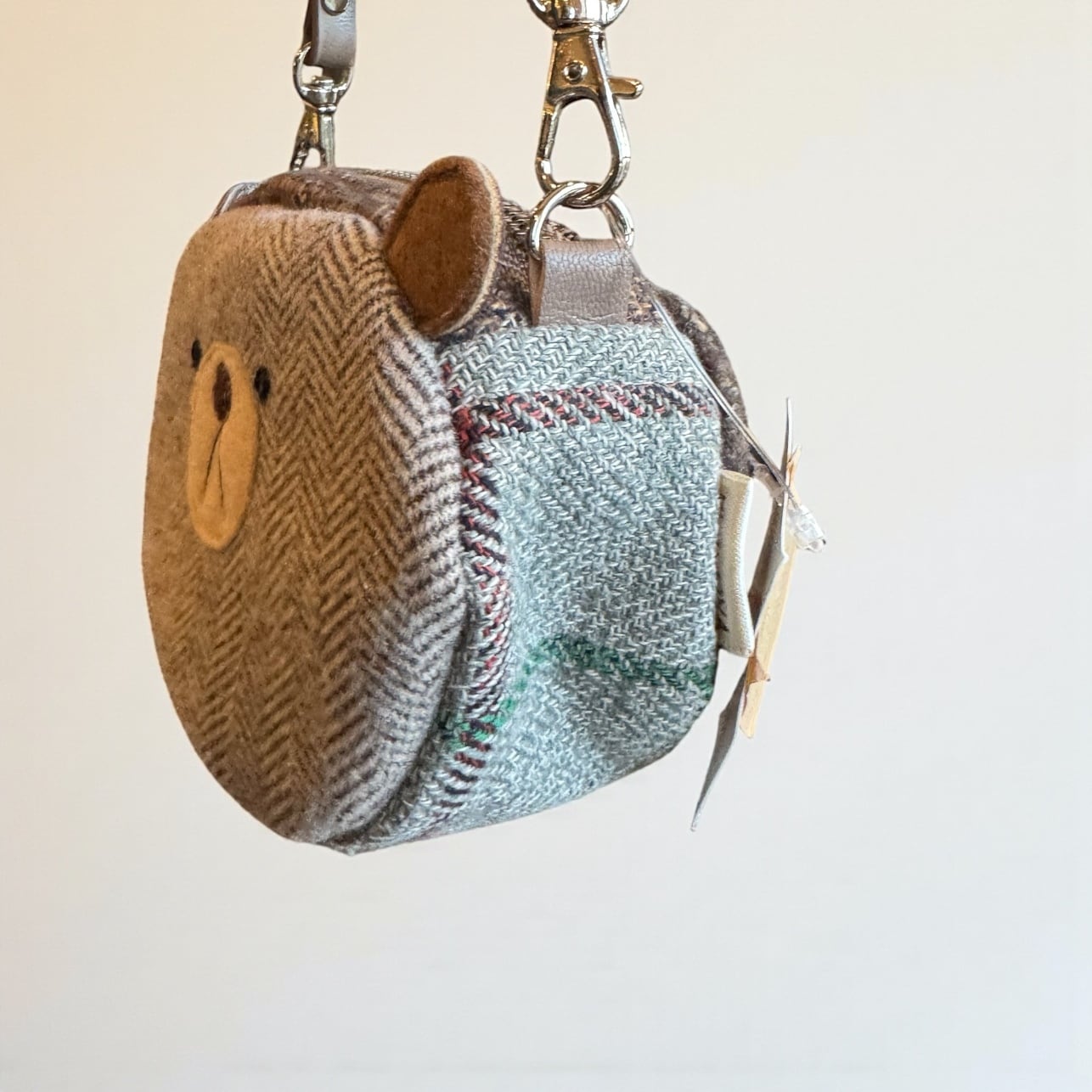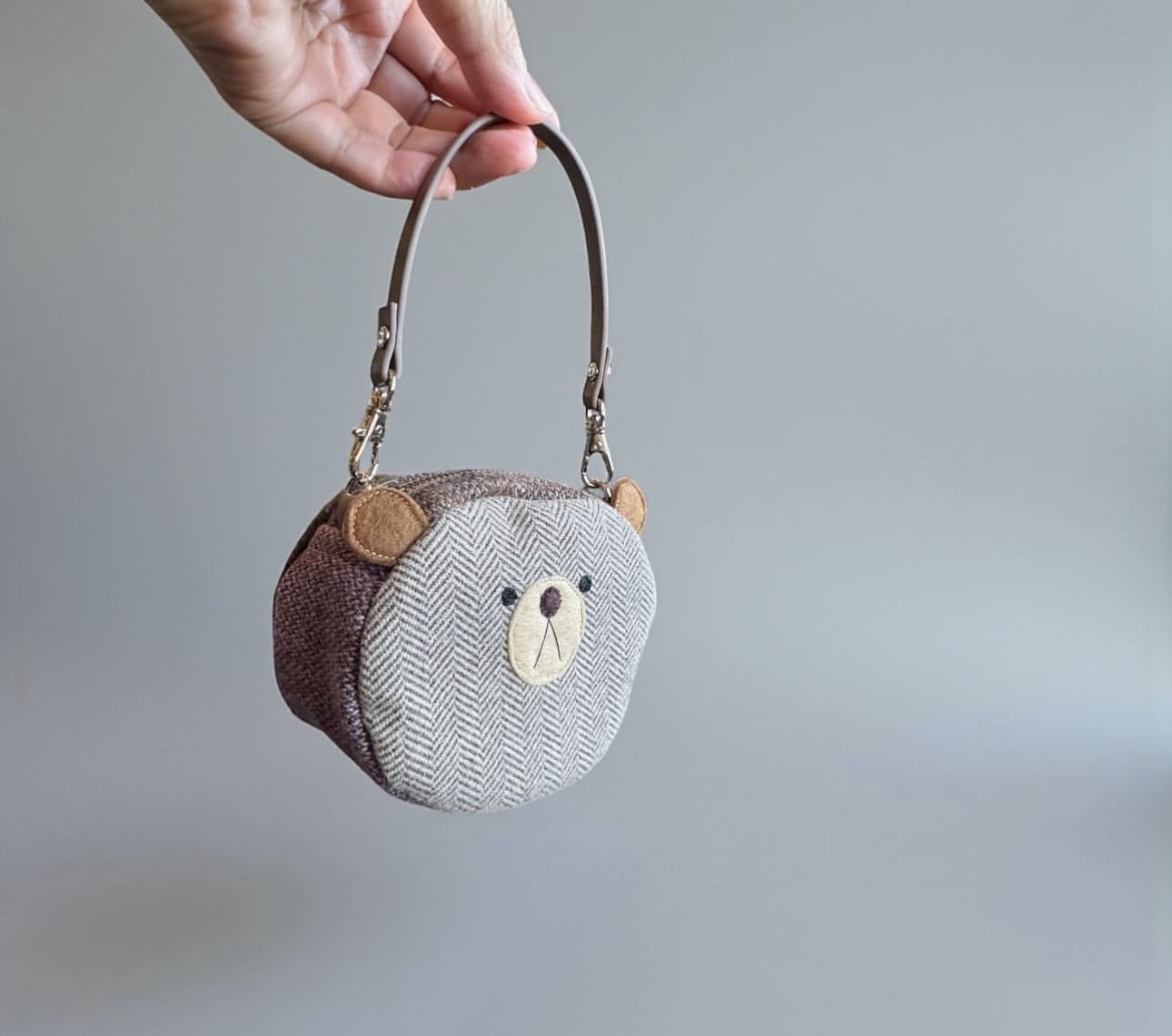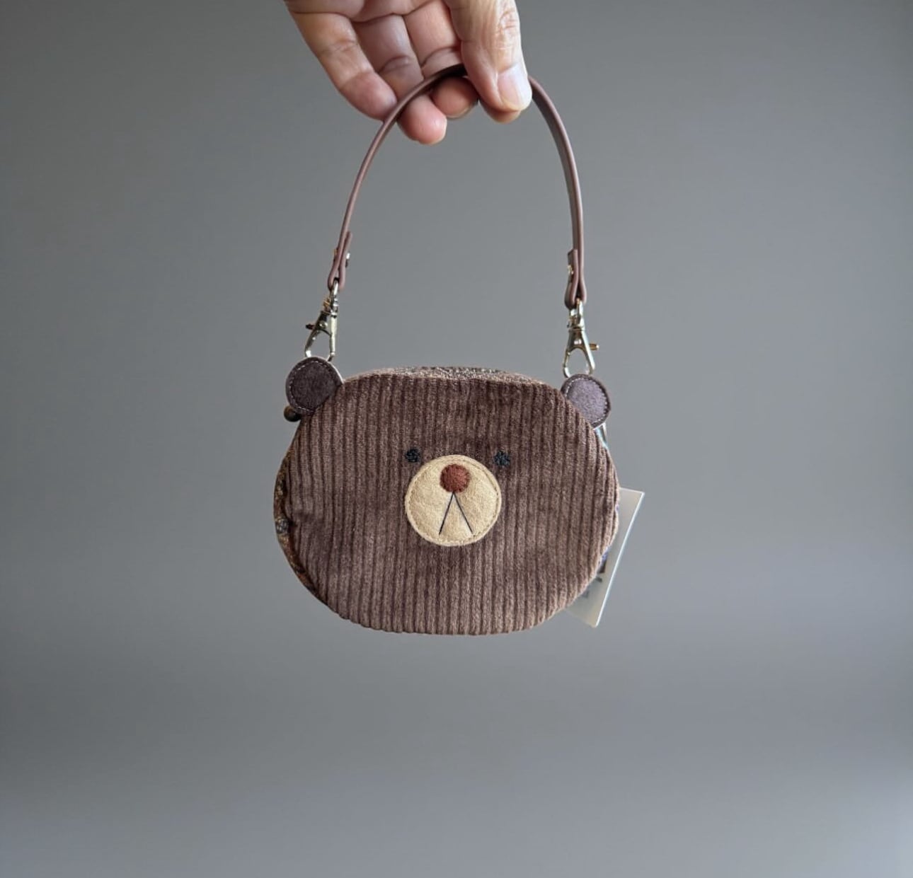 ブランド KUMAYA 横11cm 縦10cm まち5cm 可愛いくまさんポーチです。 革紐付き 取り外し可能 厚さ制限がある発送方法の場合 折りたたんで発送させて頂きます。