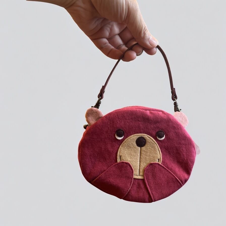 ブランド KUMAYA 新作くまさんポーチ 手持ち部分は取り外し可能 紐に変えてショルダーにもなりますし このままバックにつけても可愛い 横15cm 縦12cm まち7cm 内布はそれぞれ違います 1枚目のベージュになります