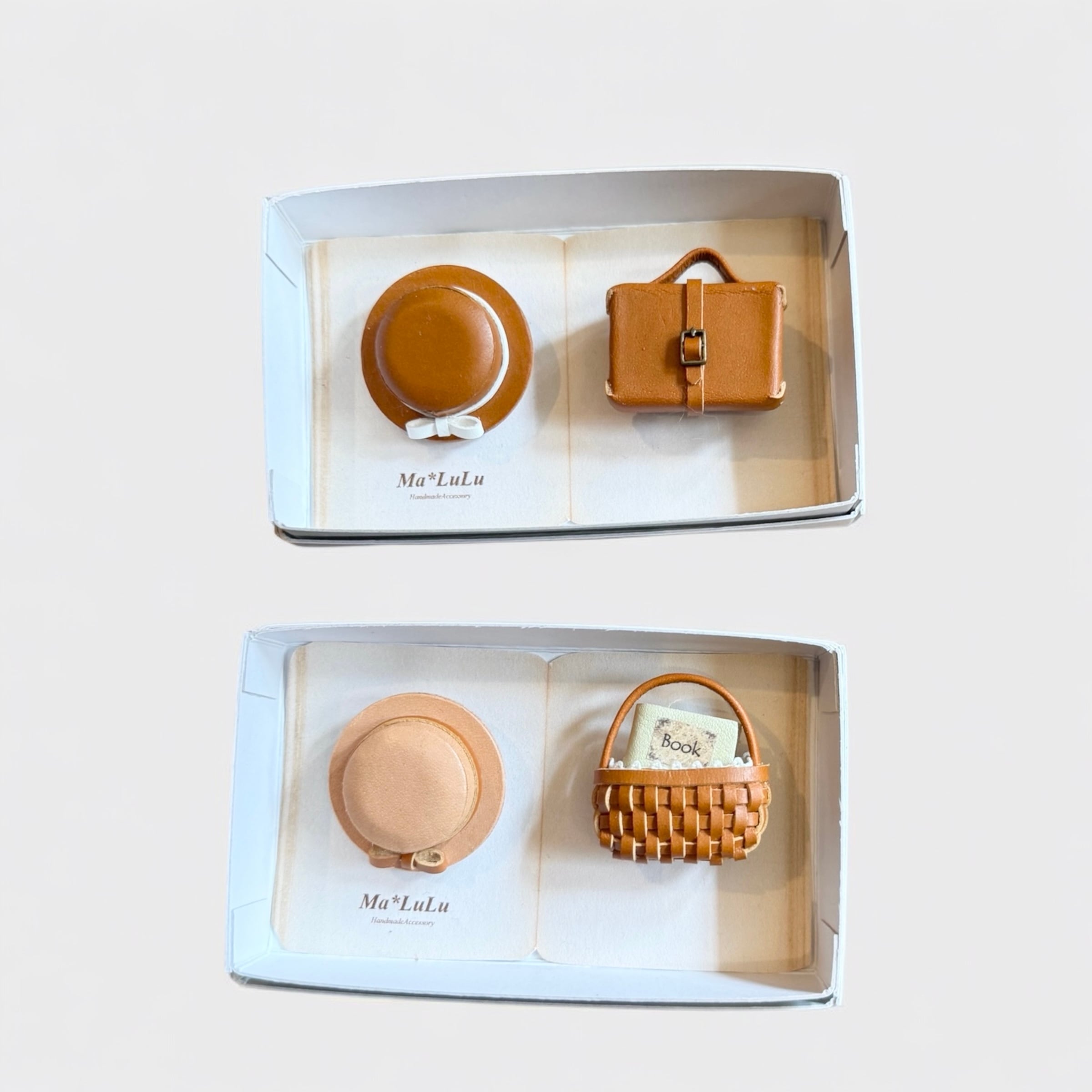 ブランド Ma Lu Lu 本革 ハンドメイドブローチ 細部まで綺麗に作られてます 帽子3sm トランク かご3cm 箱付き プレゼントにも