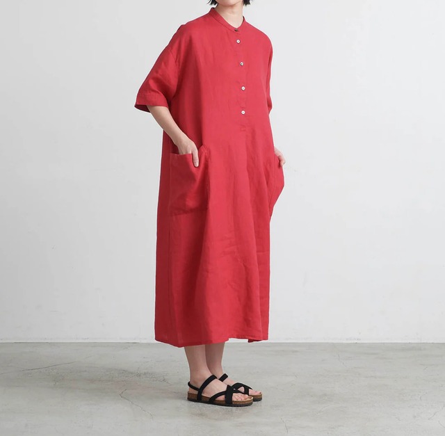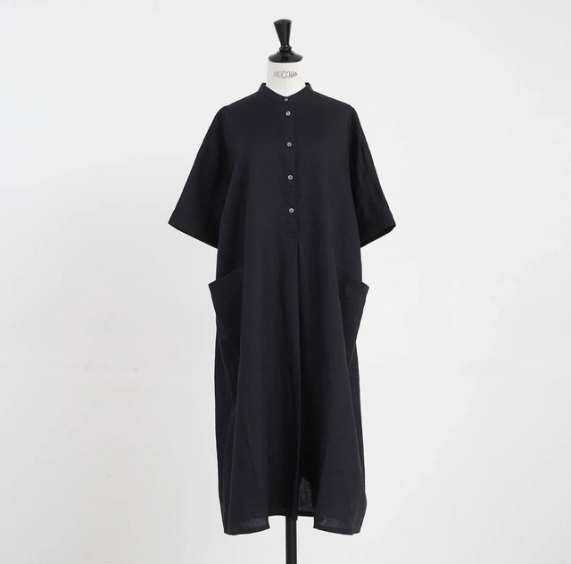 heavenly LINEN BANDCOLLAR PULLOVER ONEPIECE ブルー ブラック 2色