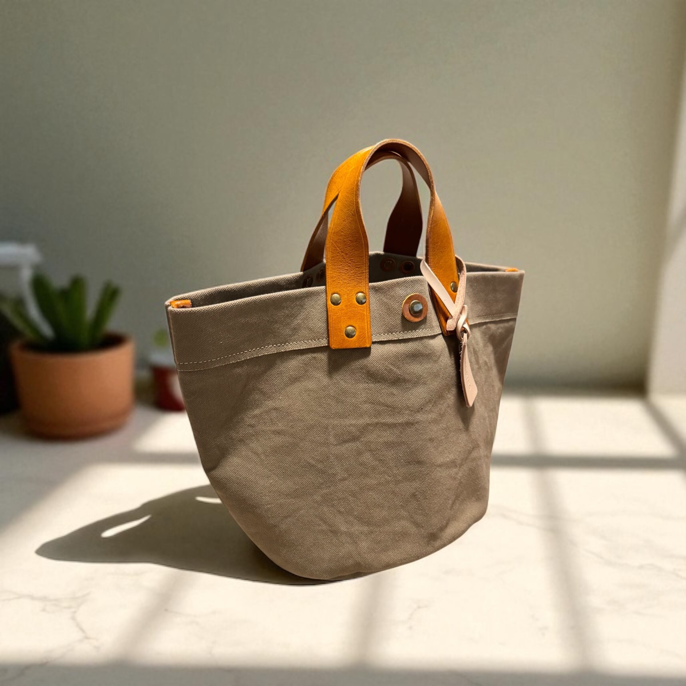 日本製 帆布×イタリア牛革 ハンドバッグ
