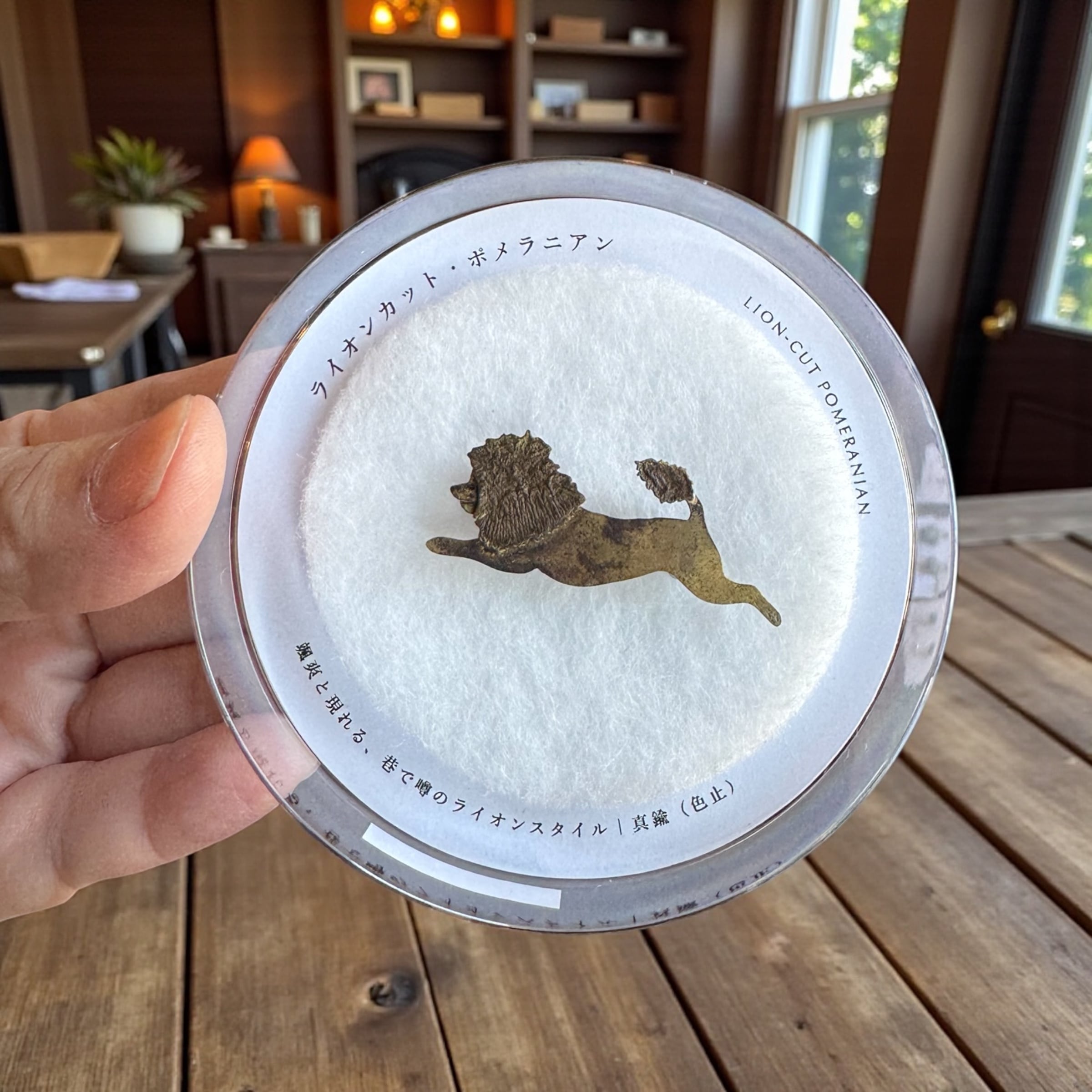 窓の庭 真鍮ブローチ ライオンカットのポメラニアン