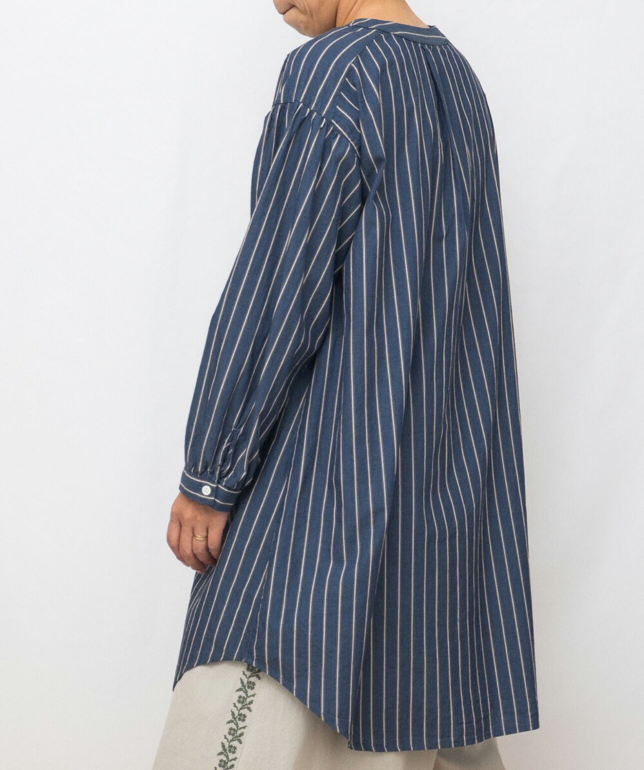 SUN VALLEY サンバレー / コットン シャンブレー ストライプ クルーネック 前開き チュニック