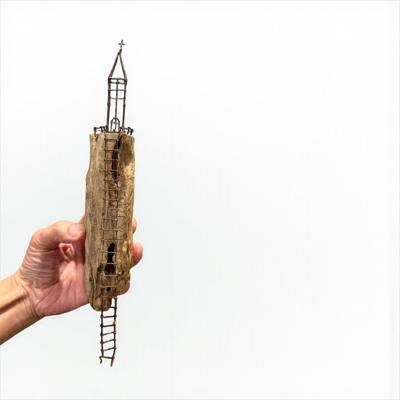 ブランド モイズム 流木と錆び錆び針金の教会オブジェ 1つ飾るだけで存在感あるオブジェです 5cm×30cm