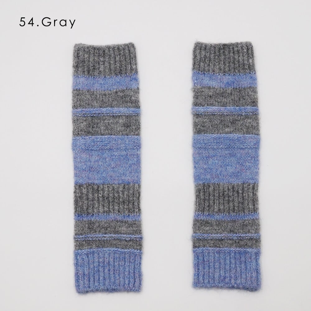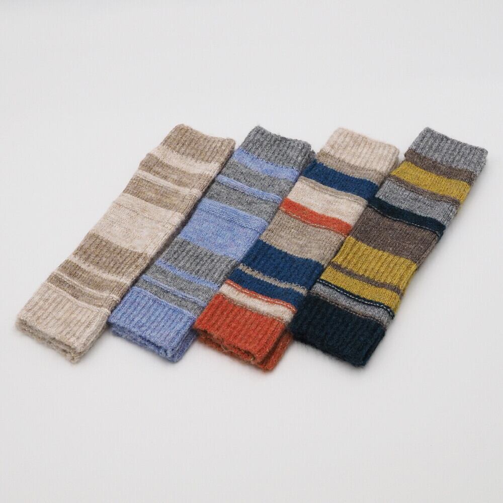 AMUKUL吸湿発熱 ウール混 ボーダー柄 ニット アームウォーマー 25AW