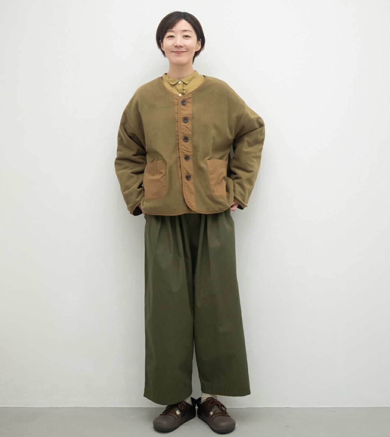 秋口や春先にはコットン側を表に、冬時期にはフリースを表に着こなしたり、寒い時期にはインナーアウターとしても活躍します。