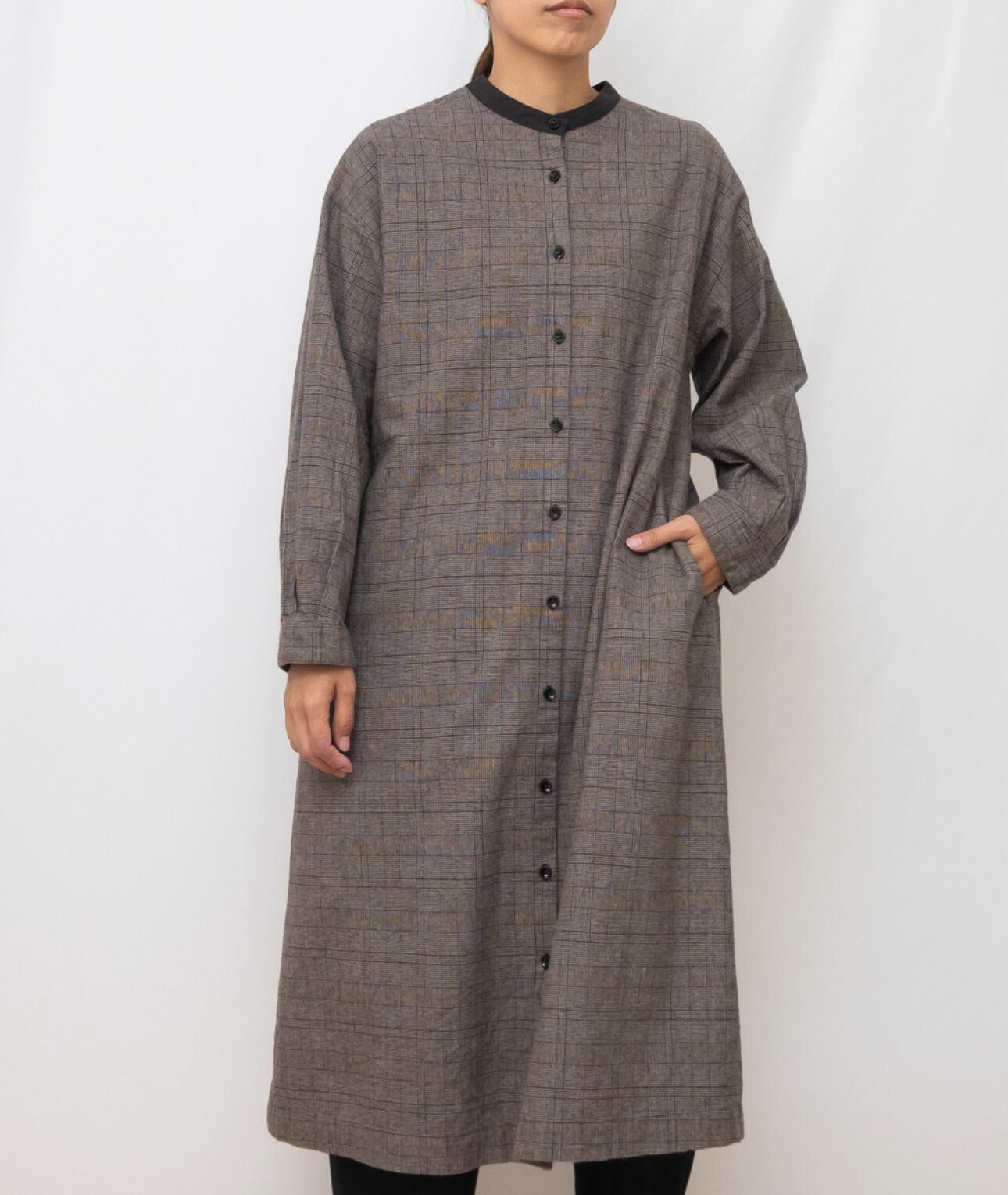 麻のナチュラルな雰囲気を残したコットンリネン平織起毛2wayシャツワンピース。