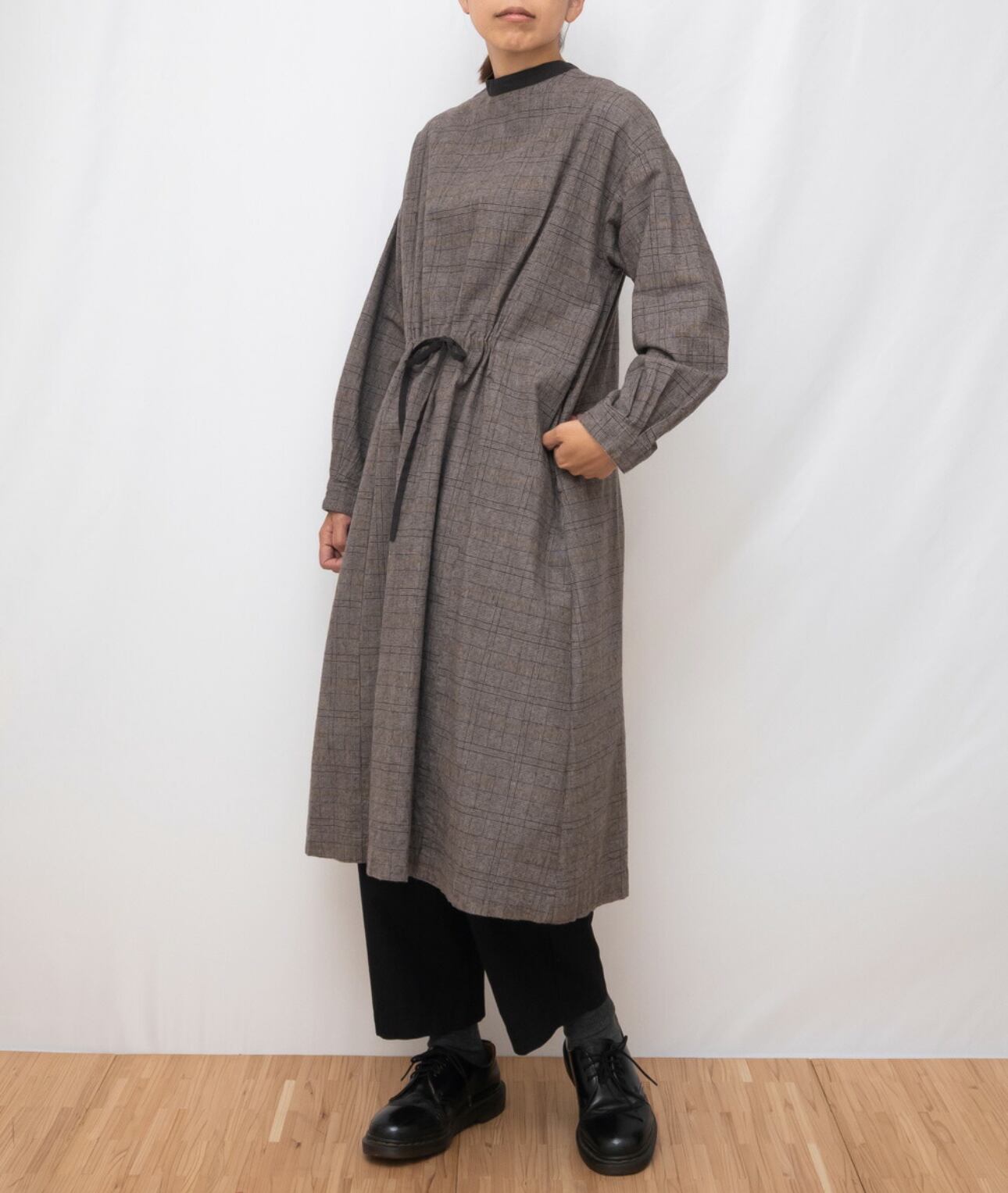 また前後で着用していただける2way仕様で羽織りワンピースとしてコート風に着こなしたり、シンプルなプルオーバーワンピースとして一枚でもスタイリングしていただけます。