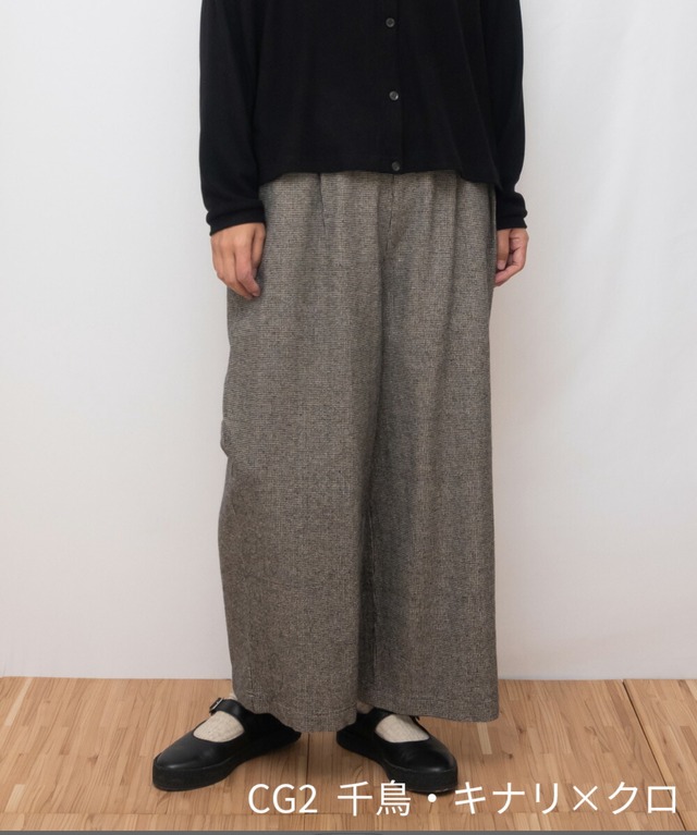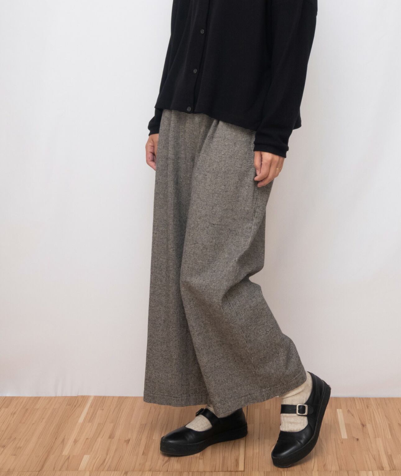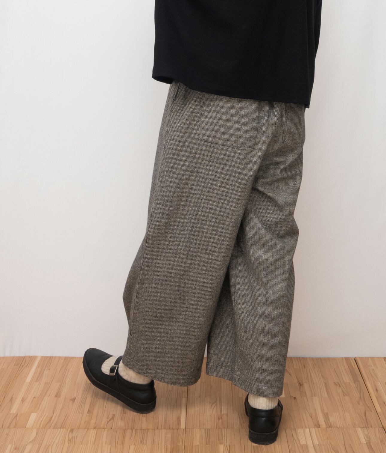 ウエストからはタックが入りゆったりとした腰回りと深めの股上で履き心地よく、裾に向かってすとんとしたワイドストレートシルエット。