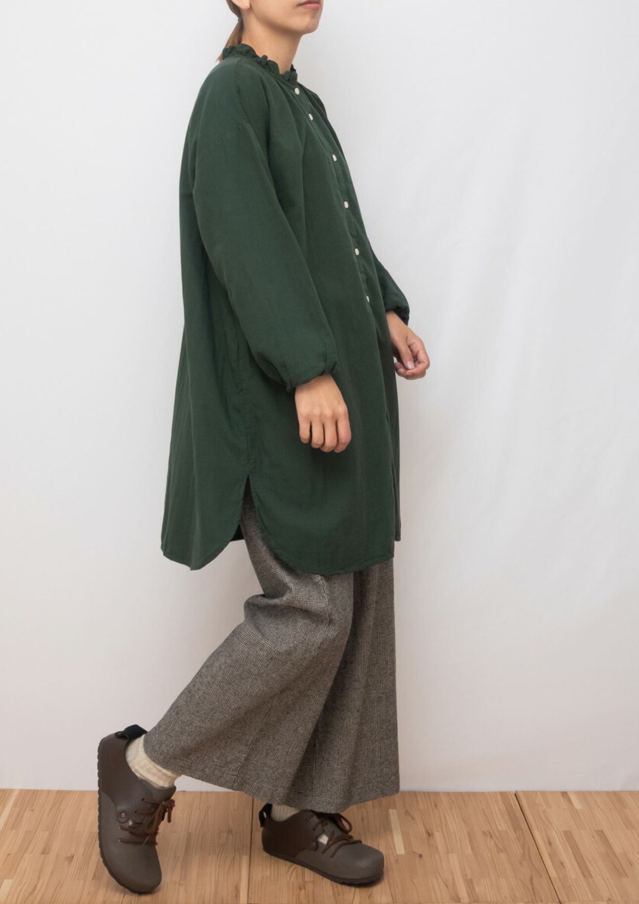 太番手の糸を使用した程よく厚みのある生地に、起毛を掛け暖かみのある風合いに仕上げました。