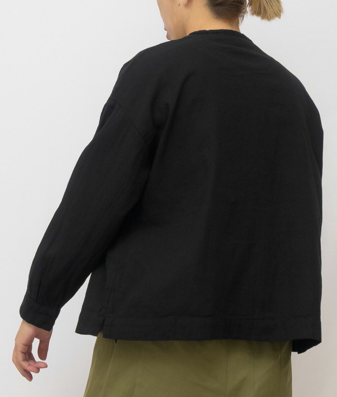 ふっくらとした厚みのコットンダブルガーゼヘンリーネックプルオーバー。