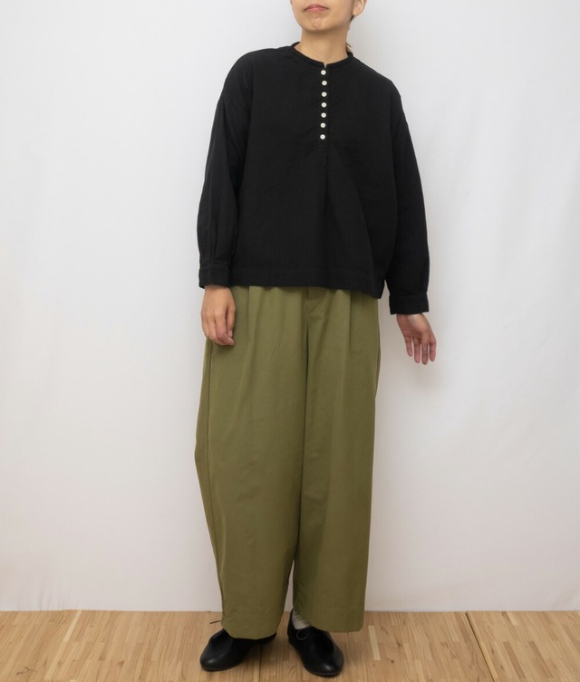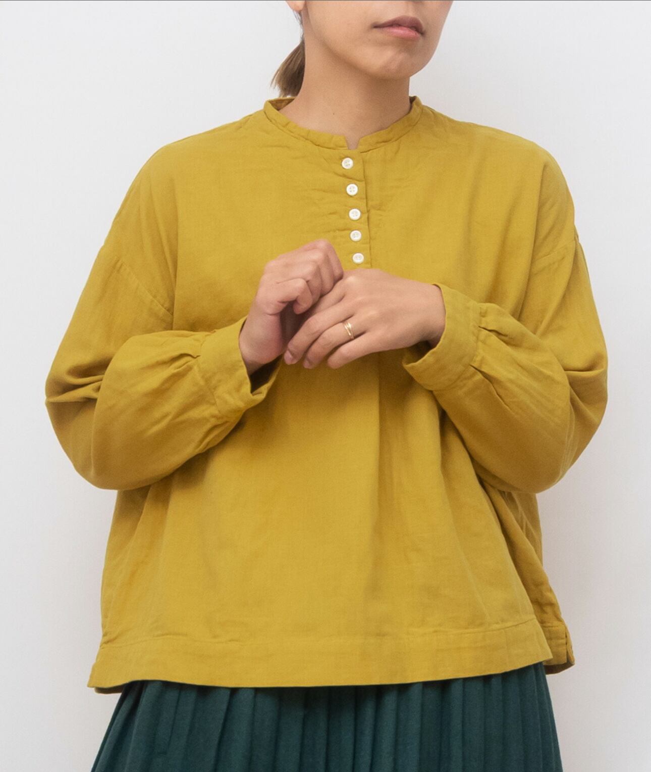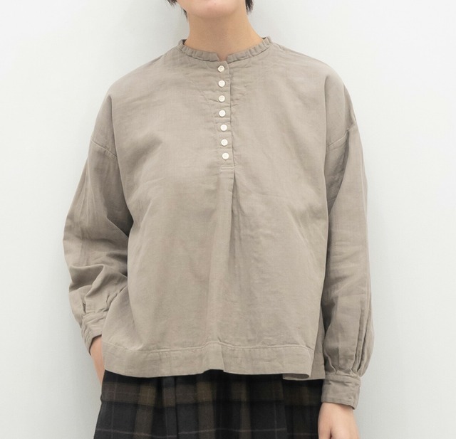 SUN VALLEY サンバレー / 製品染め コットン ダブルガーゼ ヘンリーネック ブラウス