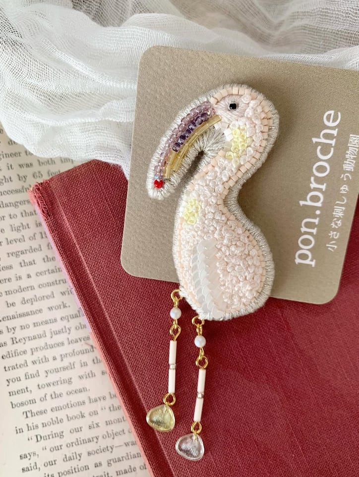 ブランド ポンブロッシュ 糸とビーズで繊細に丁寧に作られたブローチ 手刺繍 3.5cm×10cm
