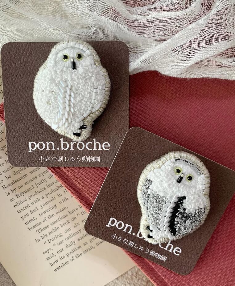 ブランド ポンブロッシュ 糸とビーズで繊細に丁寧に作られたブローチ 手刺繍 4cm×5cm
