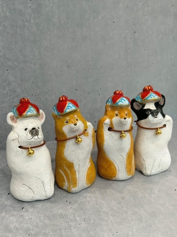 ブランド mucchi 陶土オブジェ 招き犬 高さ10cm