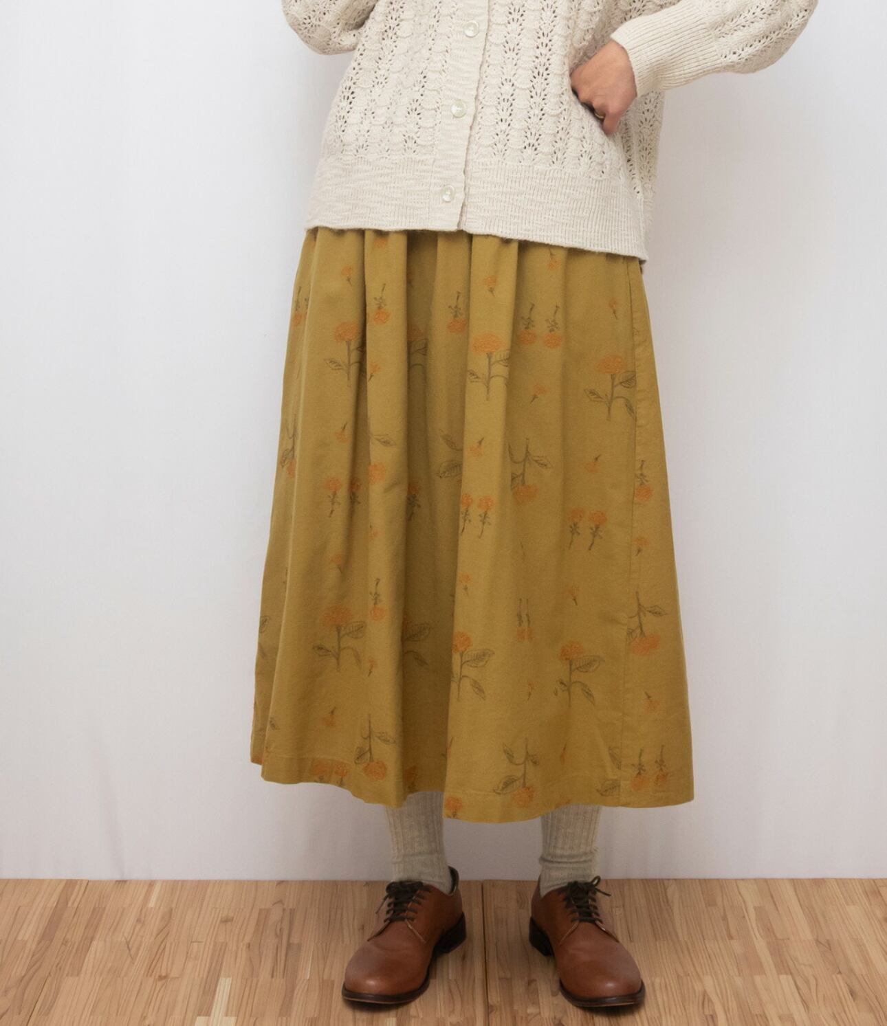 優しい肌触りのコットン平織起毛刺繍ギャザースカート。