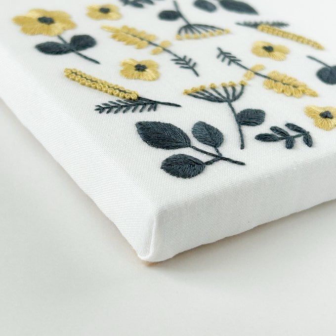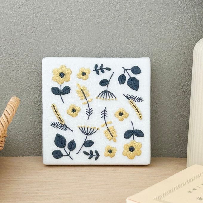 ひと針ひと針丁寧に手刺繍した草花たちを、10cm×10cmの小さなファブリックパネルに仕立てました。