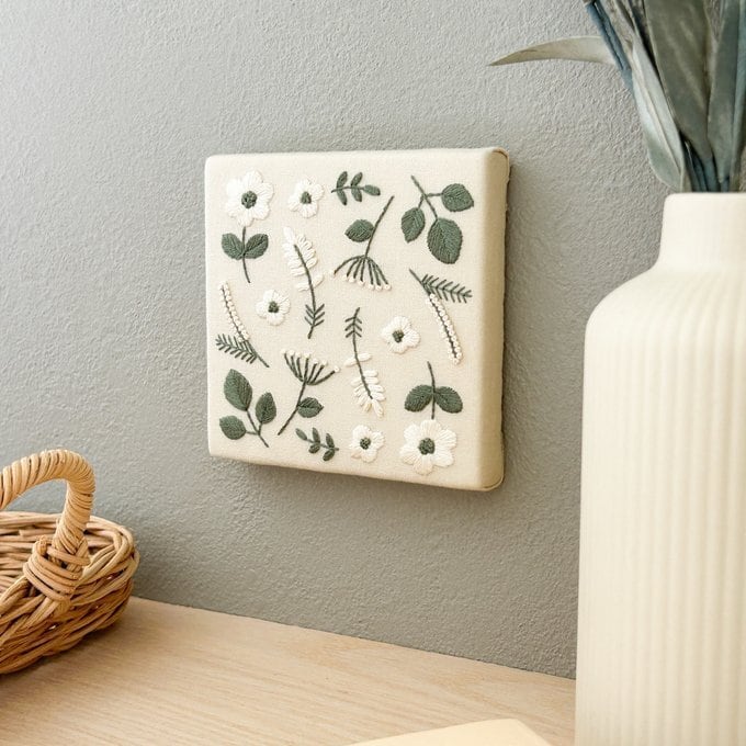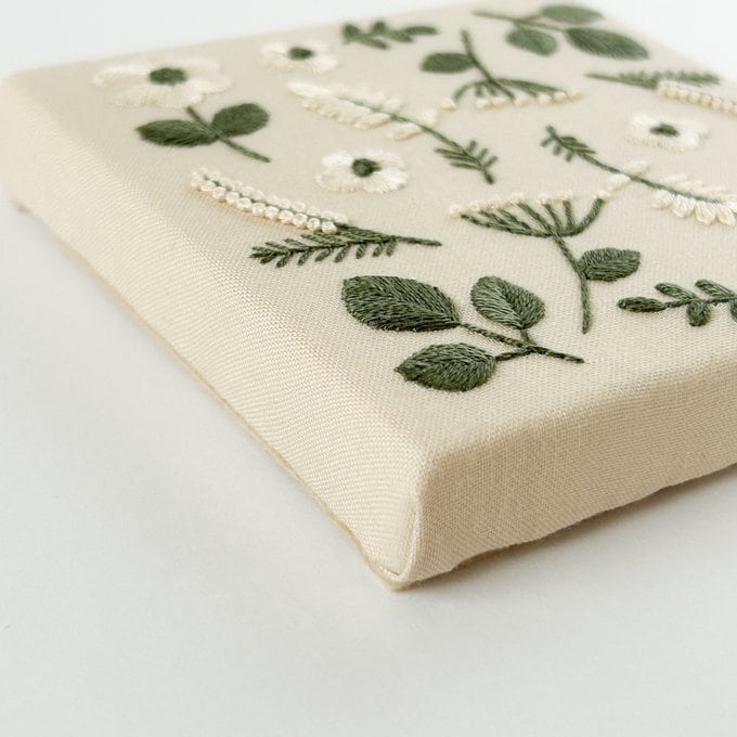 ひと針ひと針丁寧に手刺繍した草花たちを、10cm×10cmの小さなファブリックパネルに仕立てました。