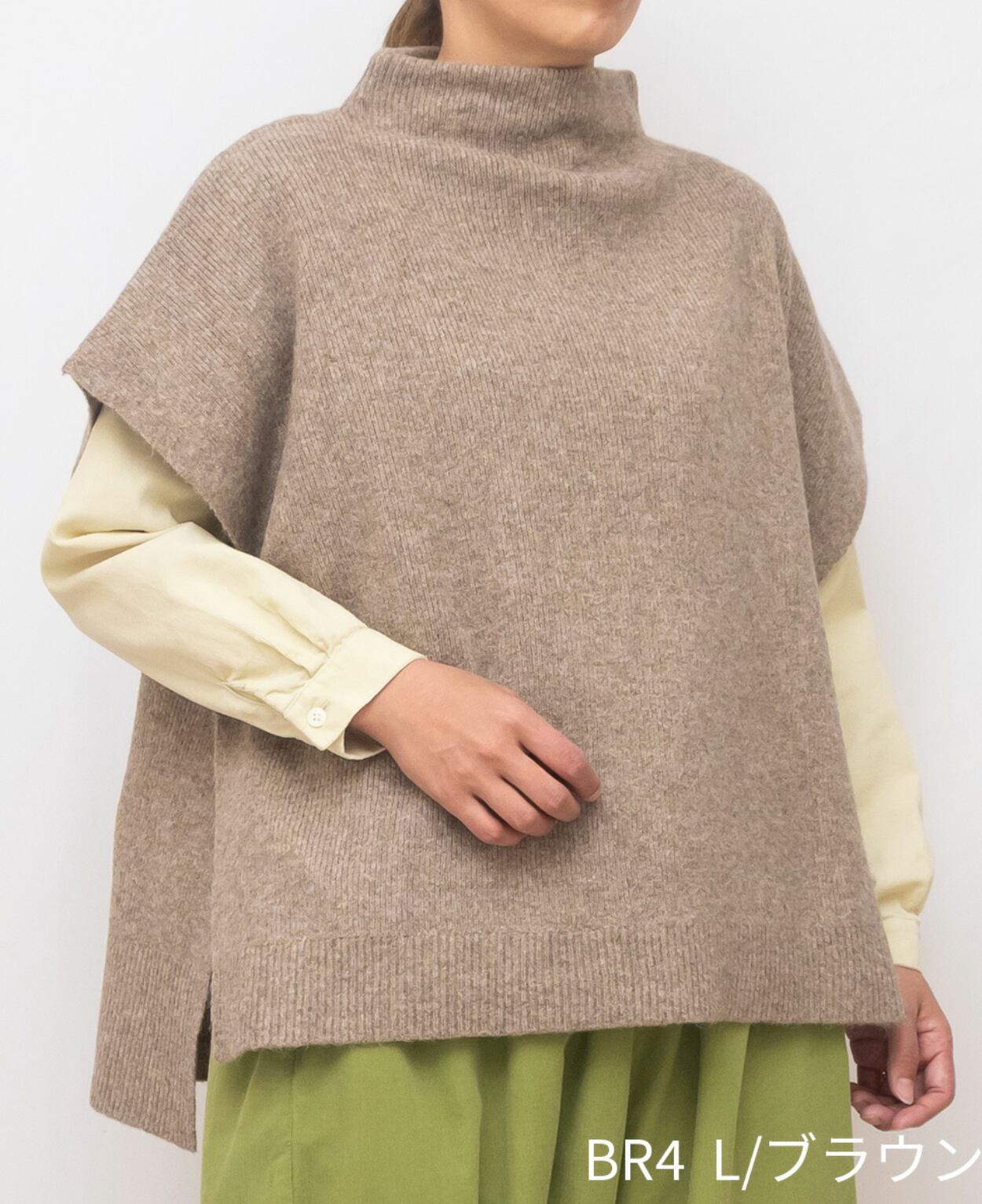 もっちりとした質感の1/14五者混ミドルゲージニットボトルネックポンチョ。