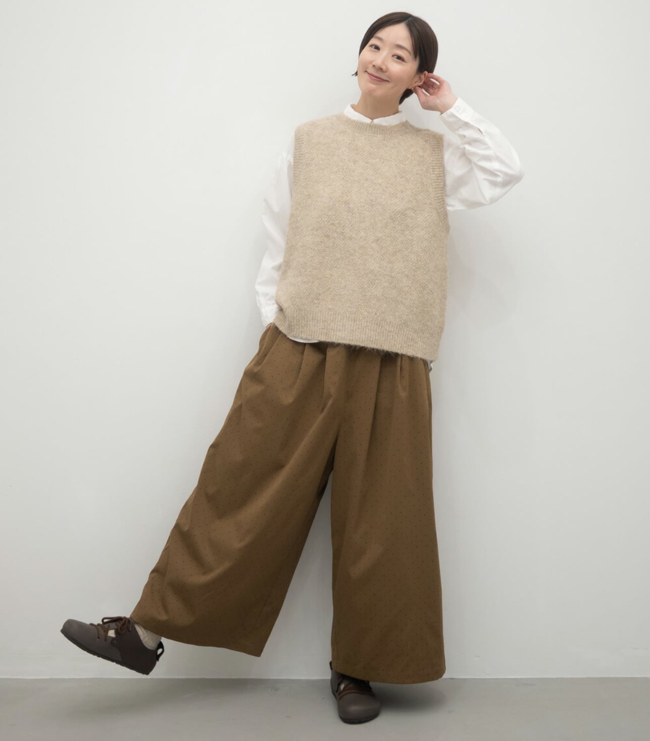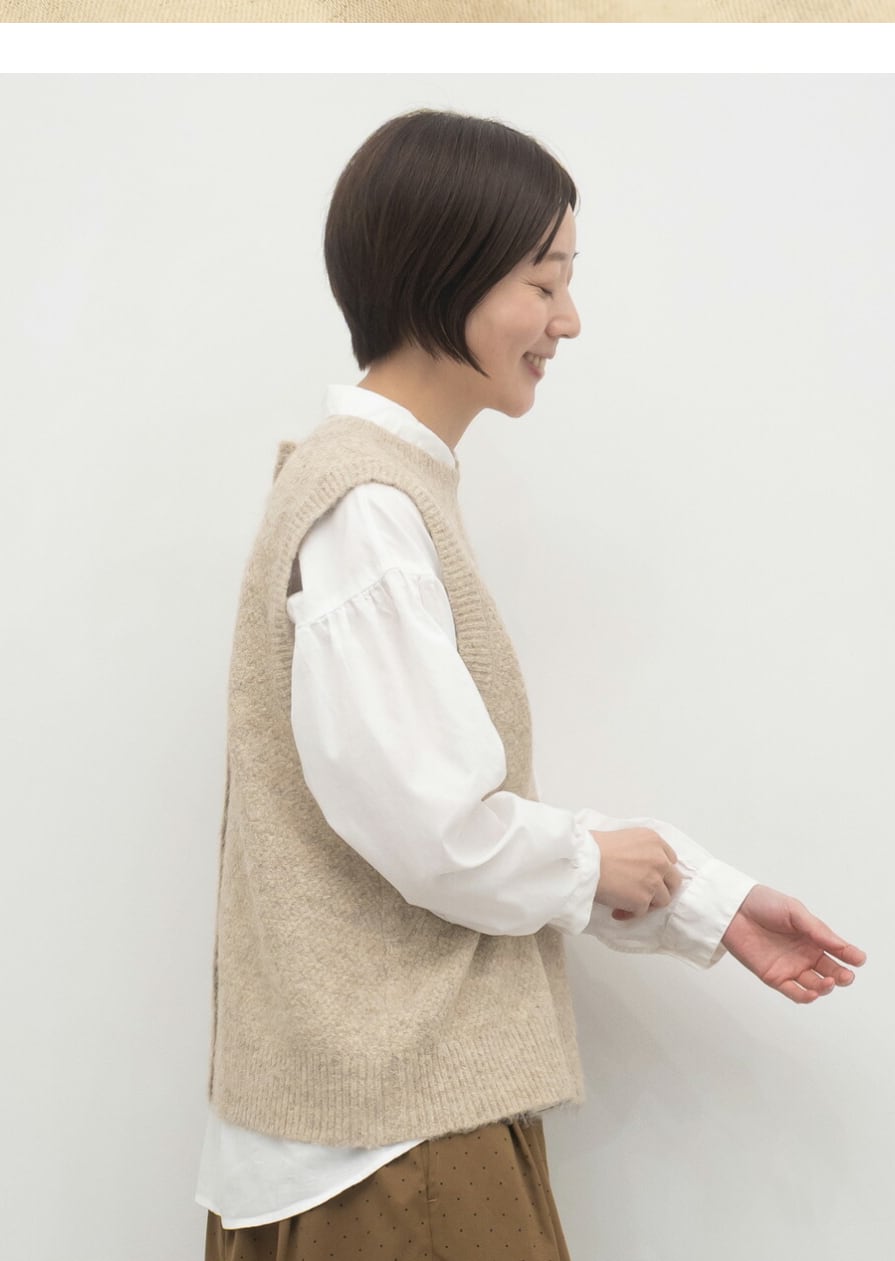 ふっくらとした厚みが特徴の四者混ローゲージニット2wayベスト。