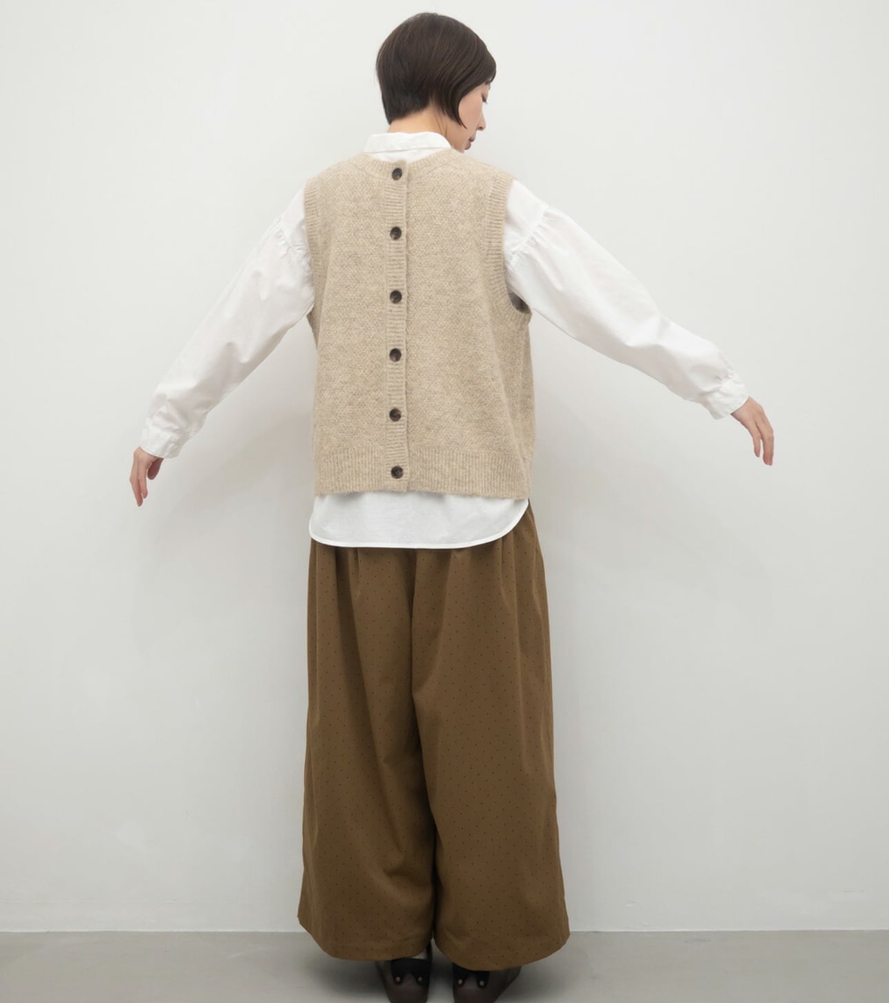 また前後で着用していただける2way仕様で羽織ベストとしてもコーディネートをお楽しみいただけます。
