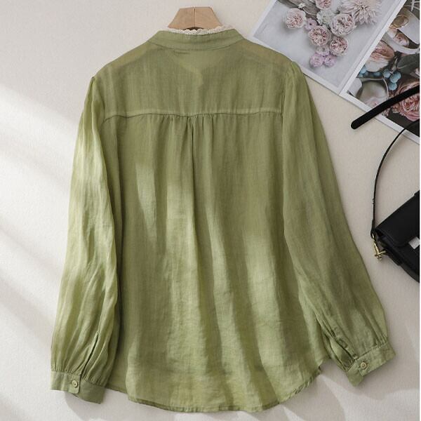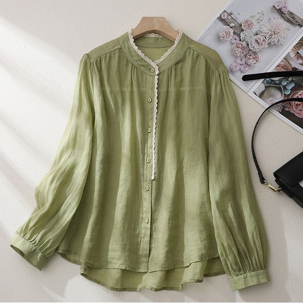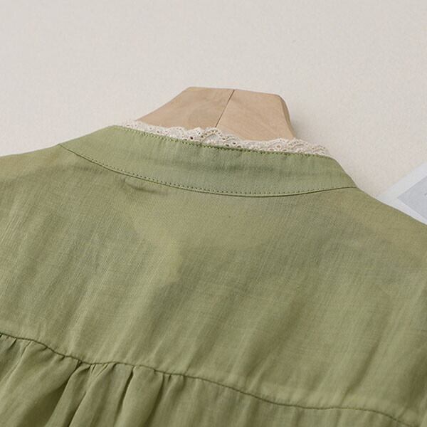 ナチュラル系レースデザインカラーコットンシャツ・ブラウス