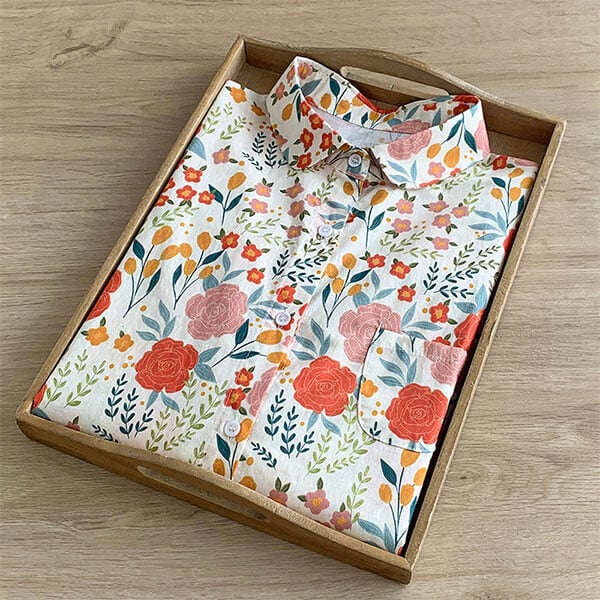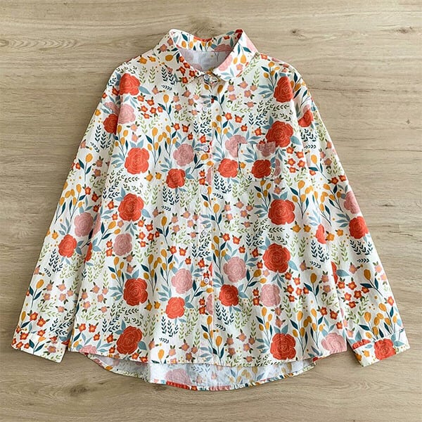 丸襟ポップなプリント柄コットンシャツ・ブラウス