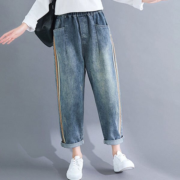 ユーズドジーンズパンツ サイズ ウエスト総ゴム平置き30cm 最大45cm 股下60cm わたり33cm 【素材・成分】 コットン