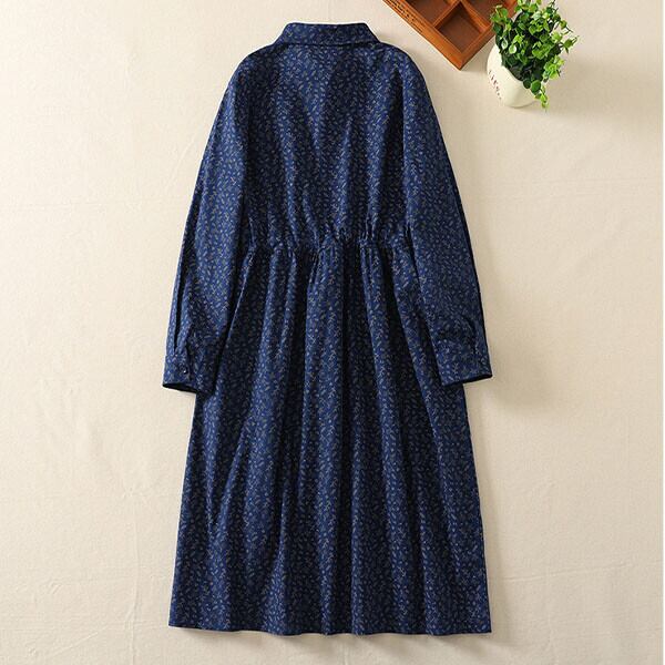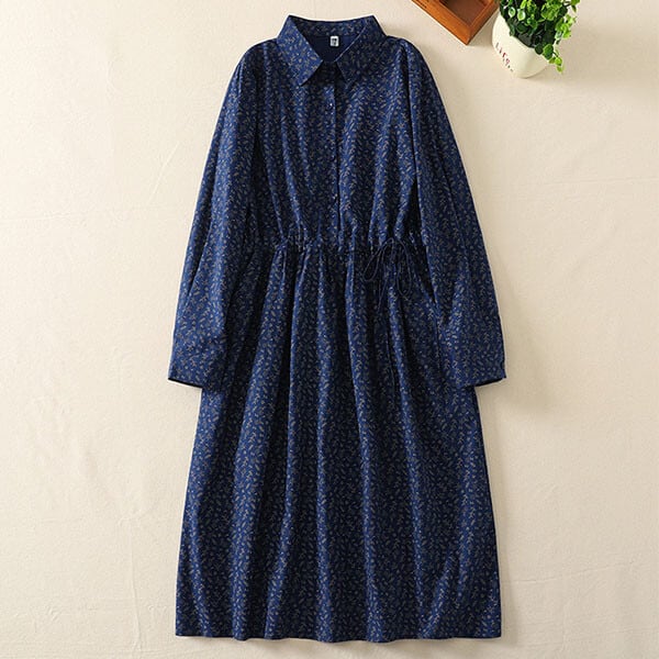 北欧風リーフプリント柄コットンワンピース