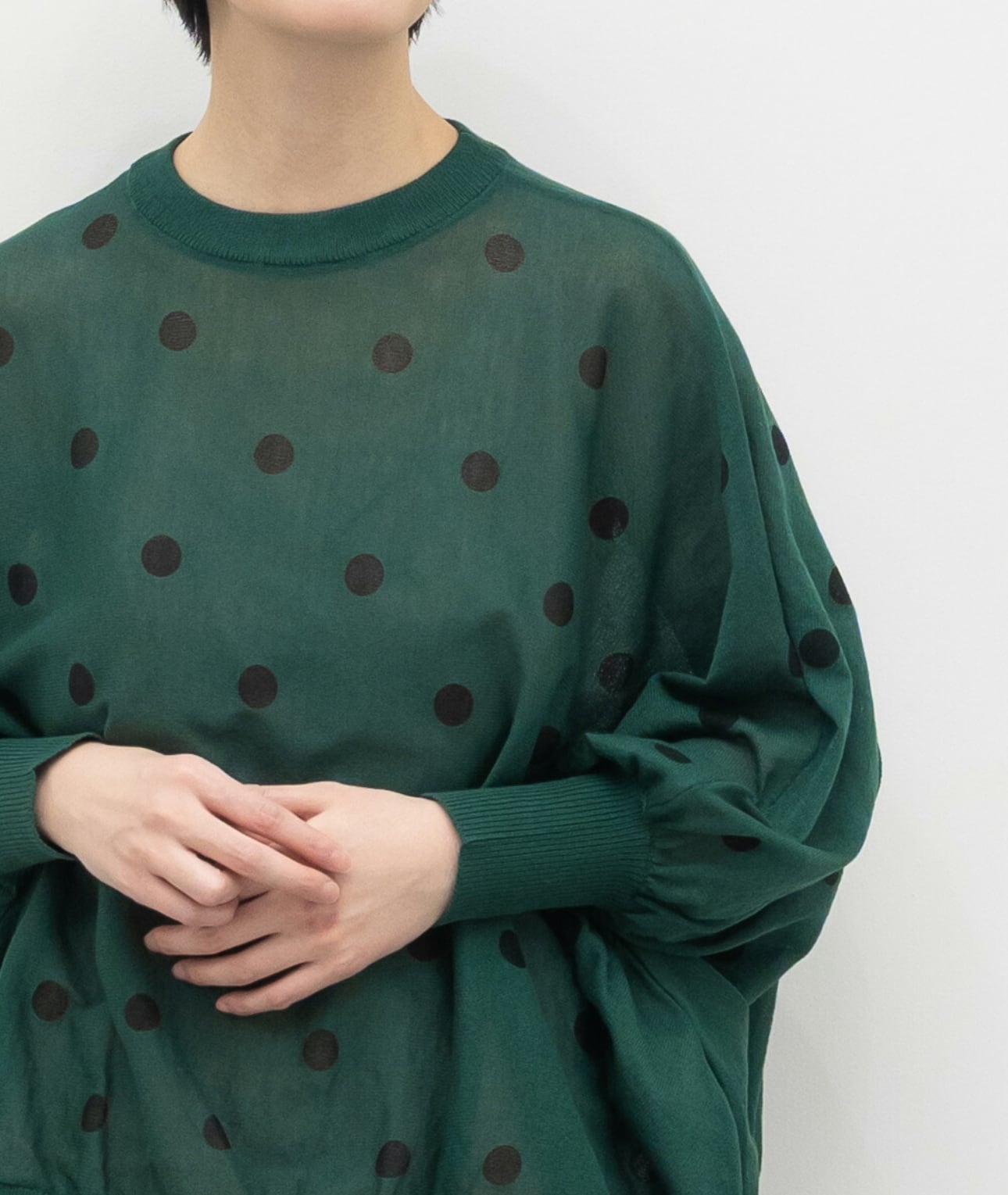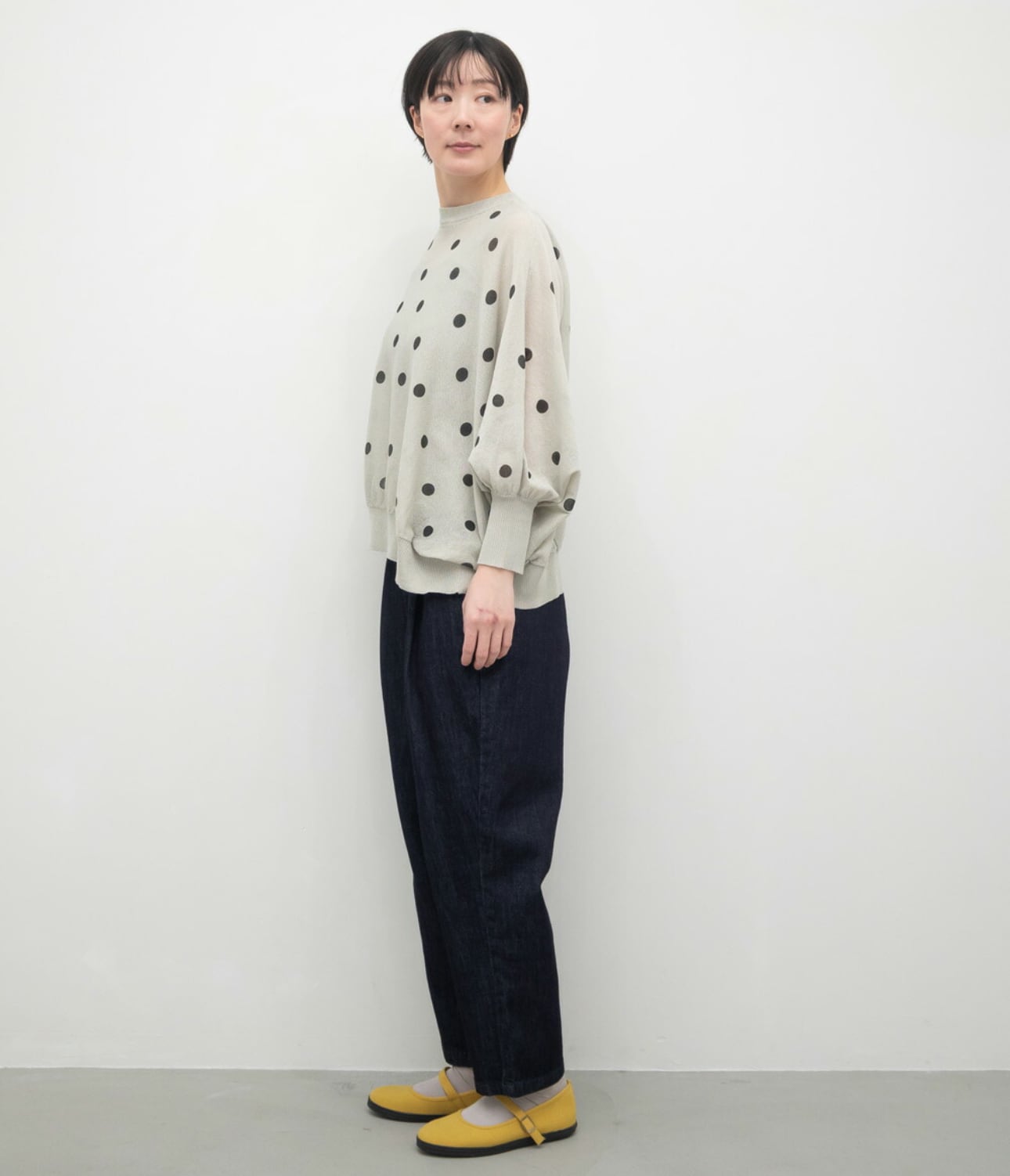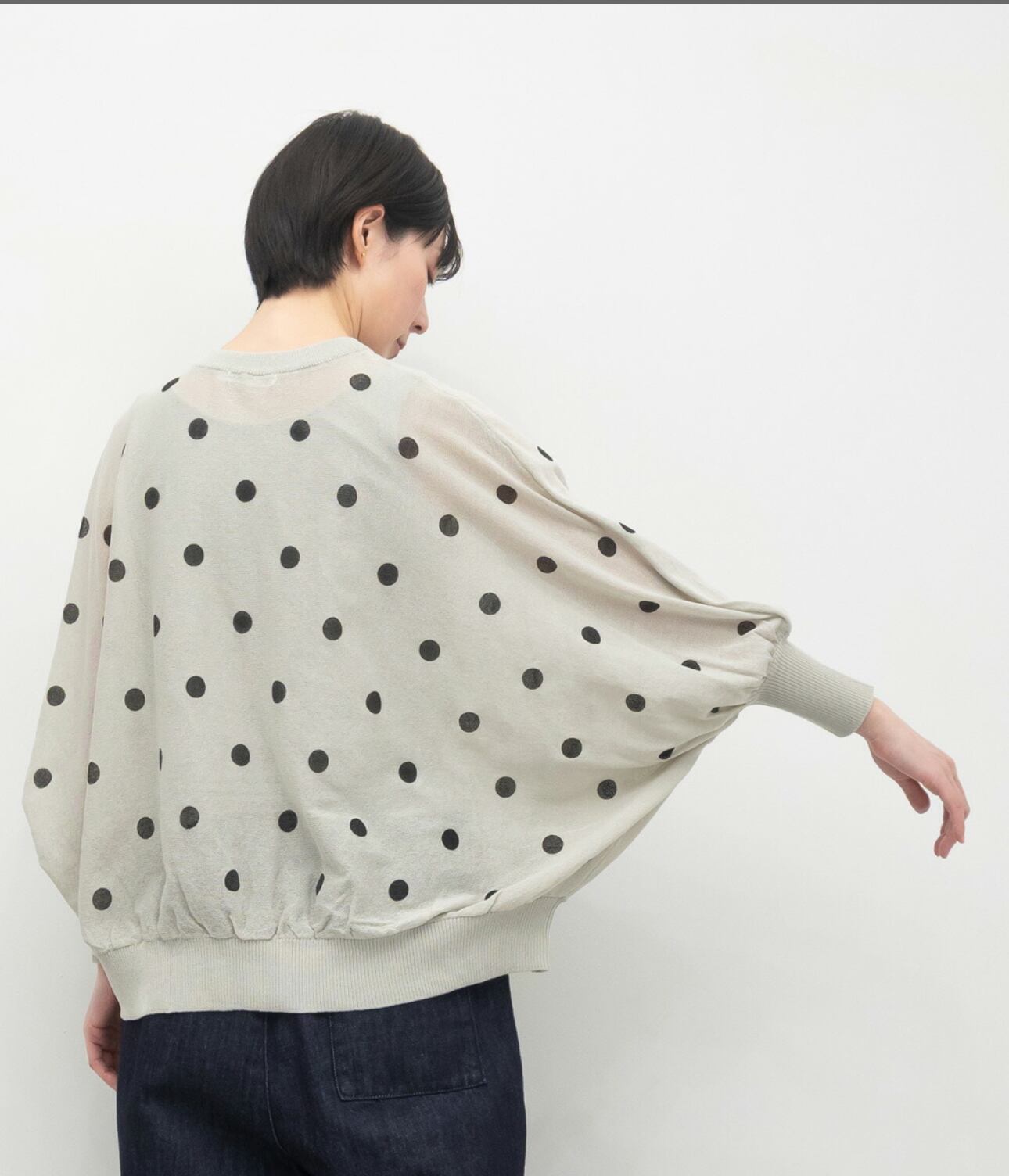 SUN VALLEY サンバレー / 麻タッチ ポリエステル 天竺 ドットプリント ドルマン プルオーバー