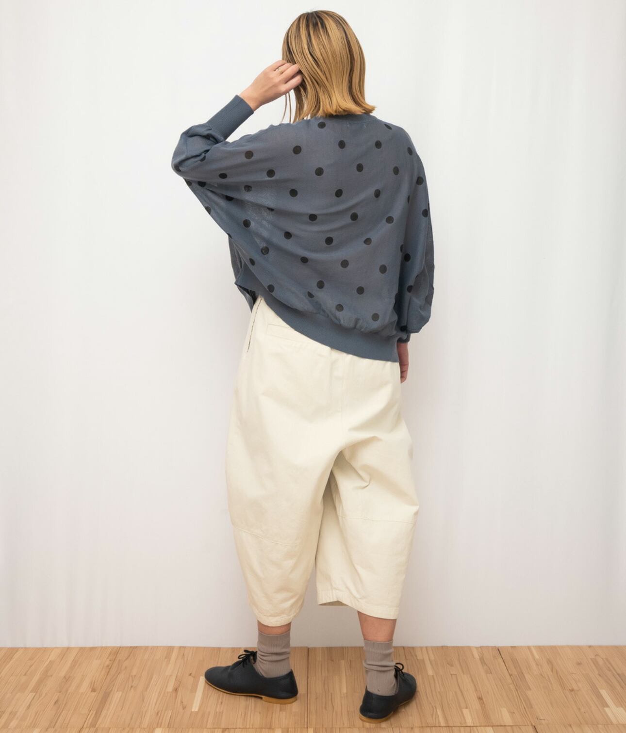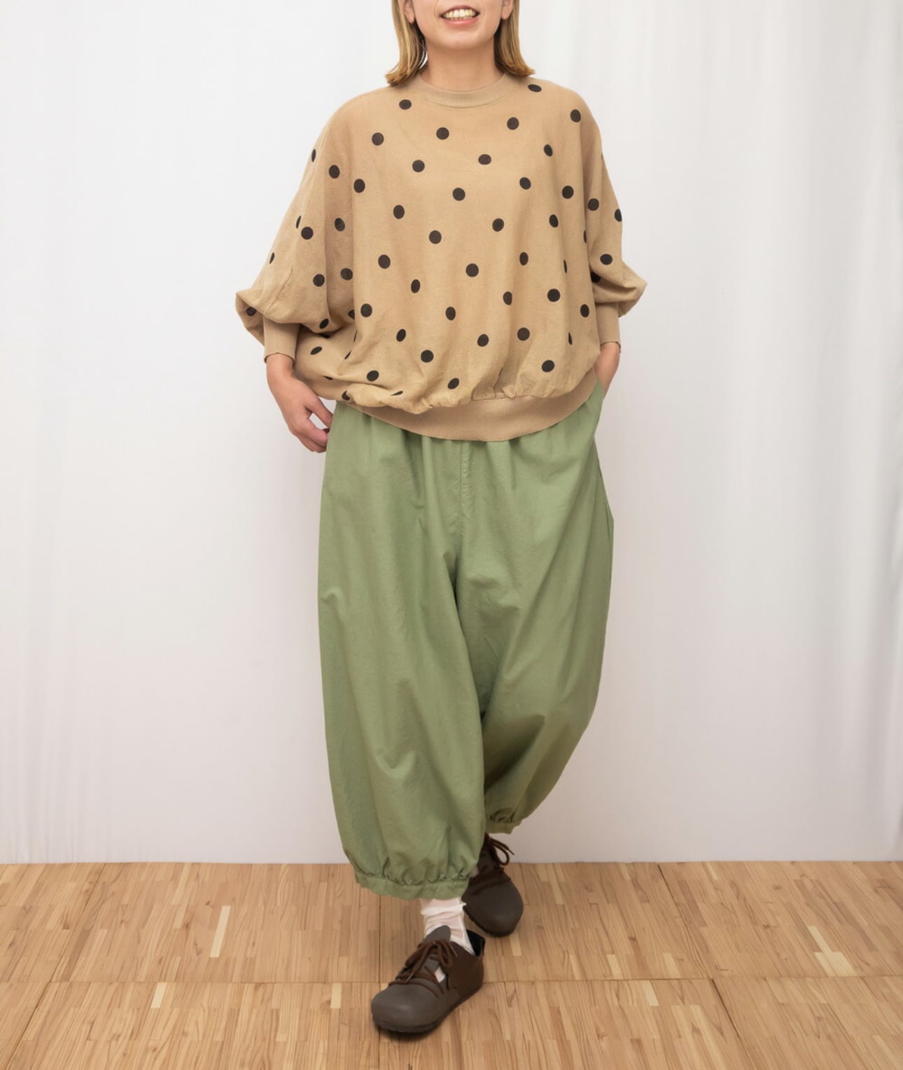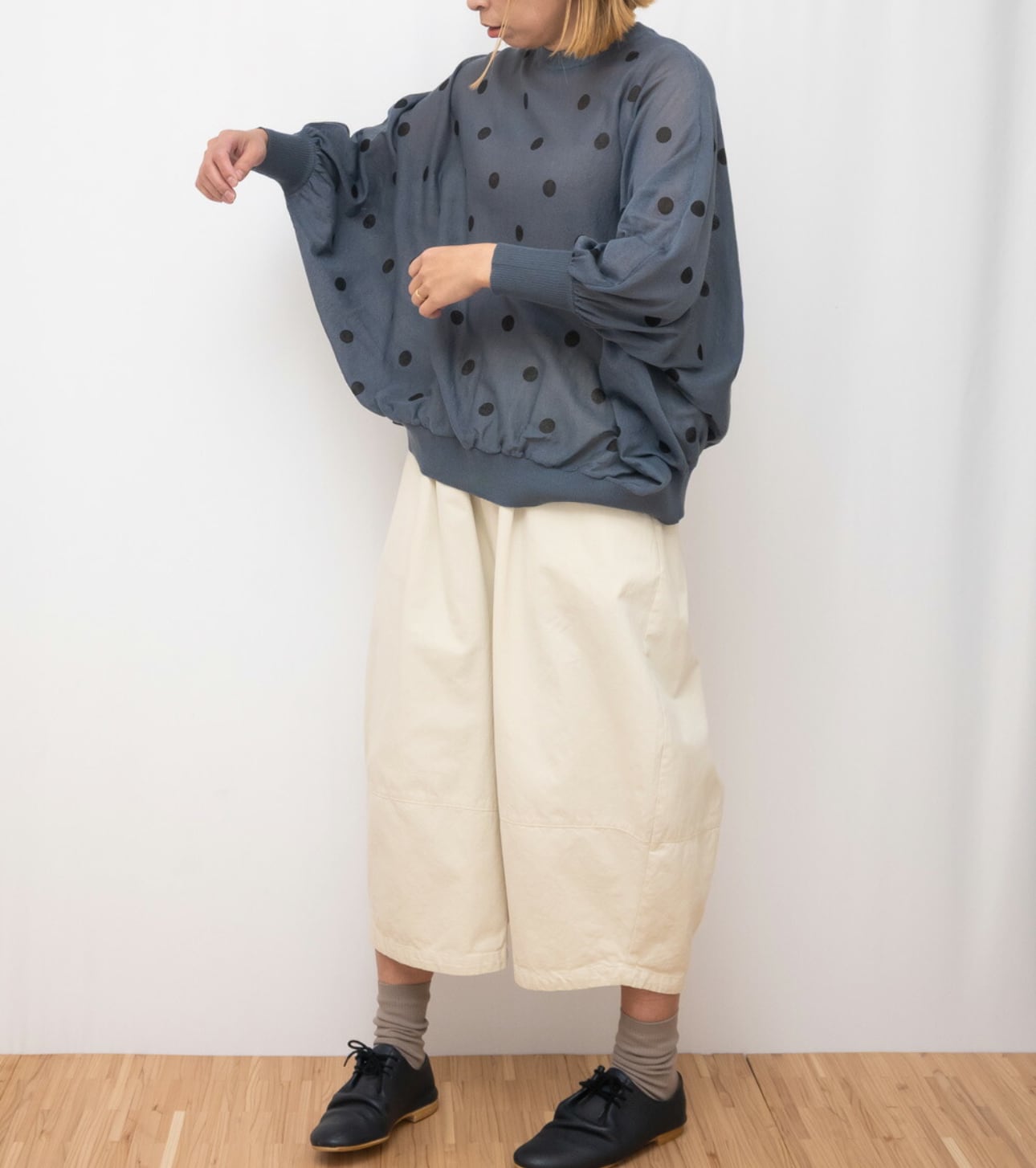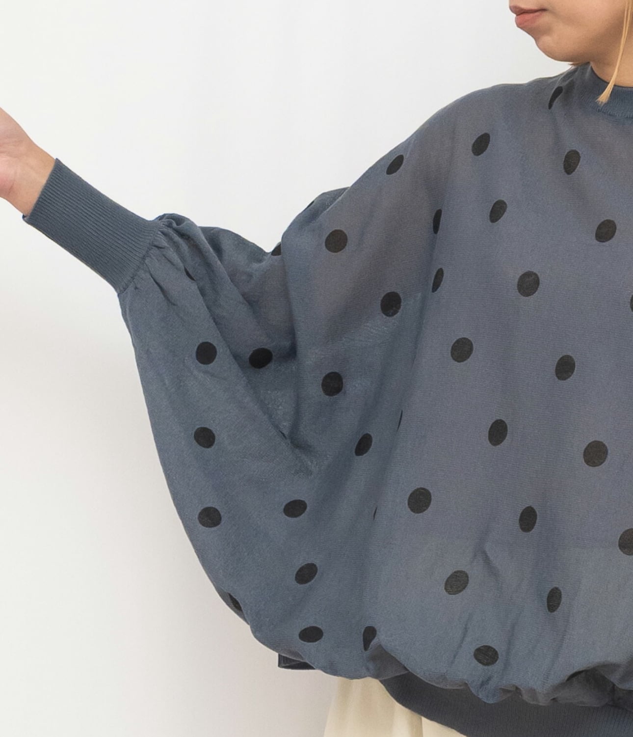 SUN VALLEY サンバレー / 麻タッチ ポリエステル 天竺 ドットプリント ドルマン プルオーバー