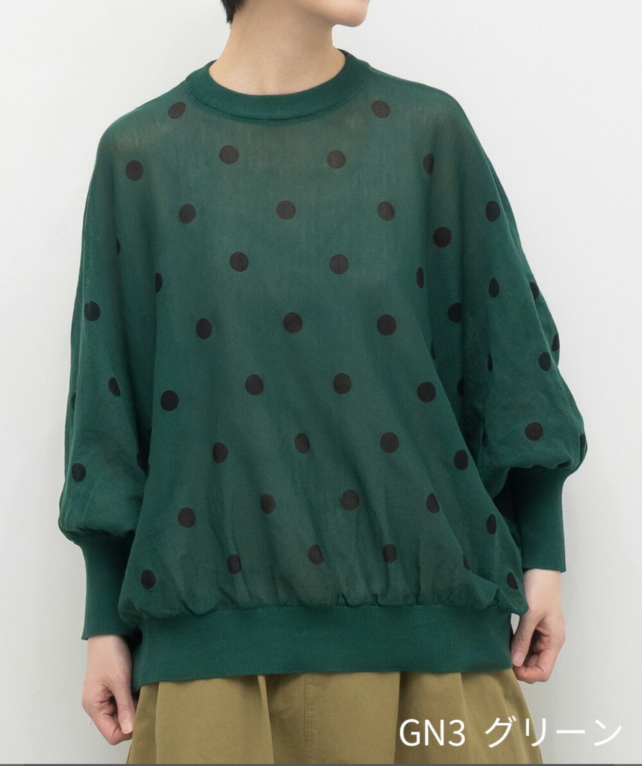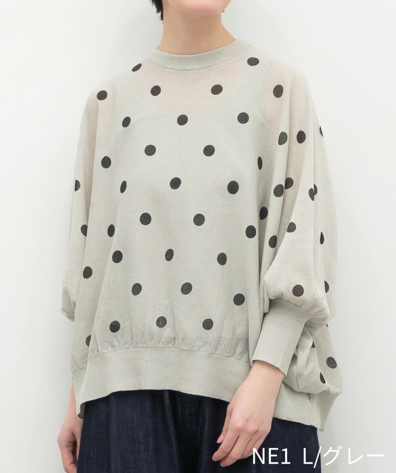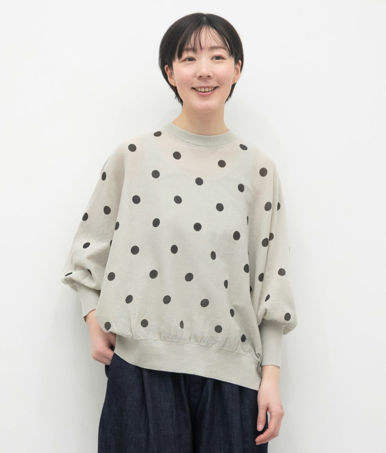 ニットでは珍しいドットプリントを馴染むよう薄くのせた春夏におすすめなニットです。