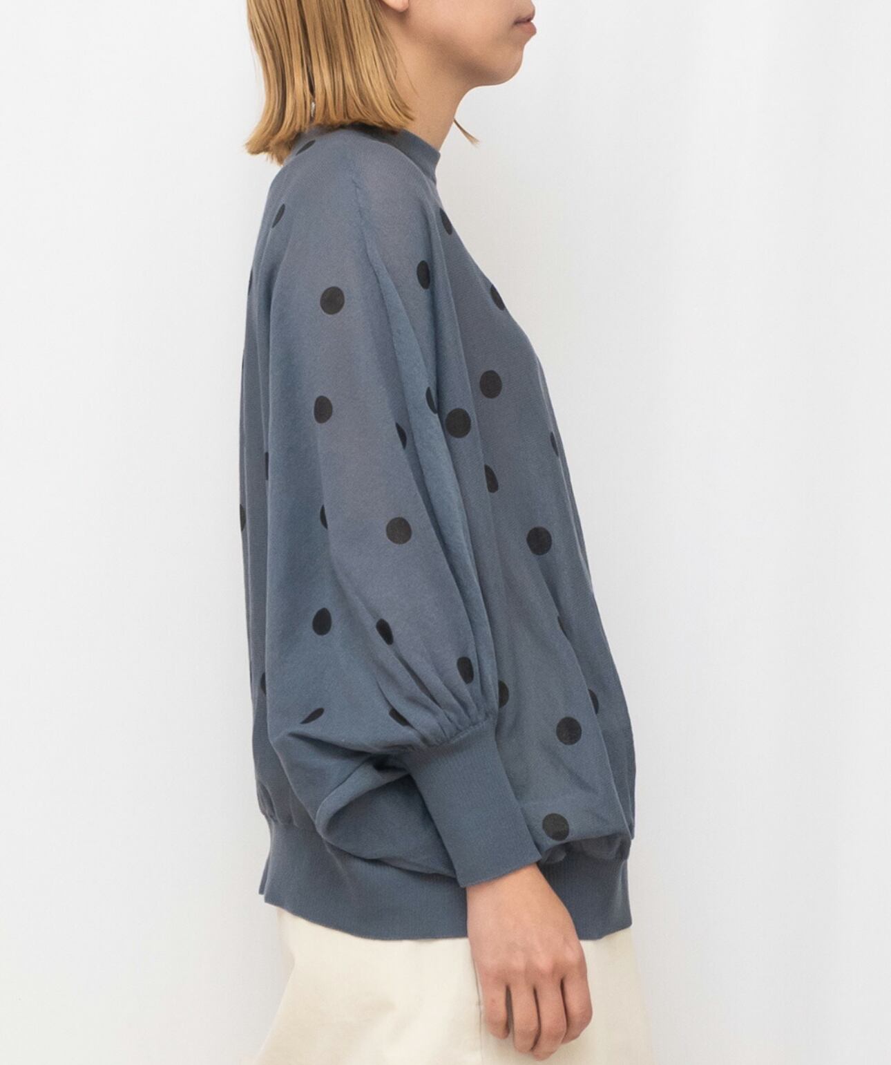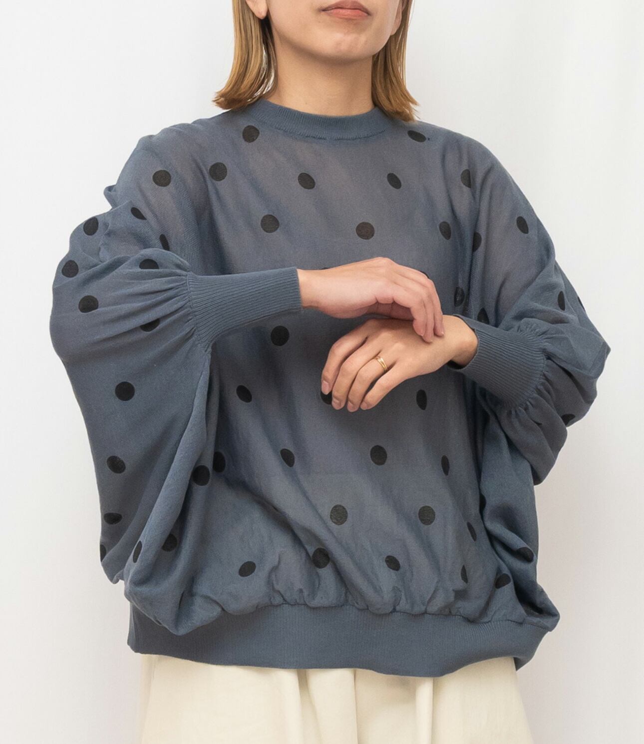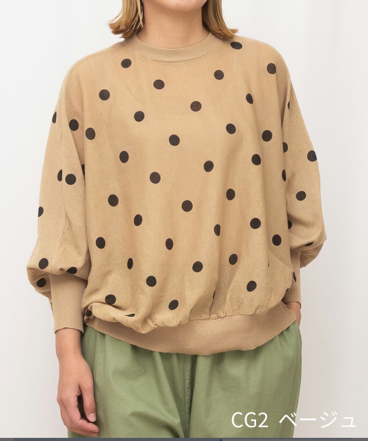 ニットでは珍しいドットプリントを馴染むよう薄くのせた春夏におすすめなニットです。