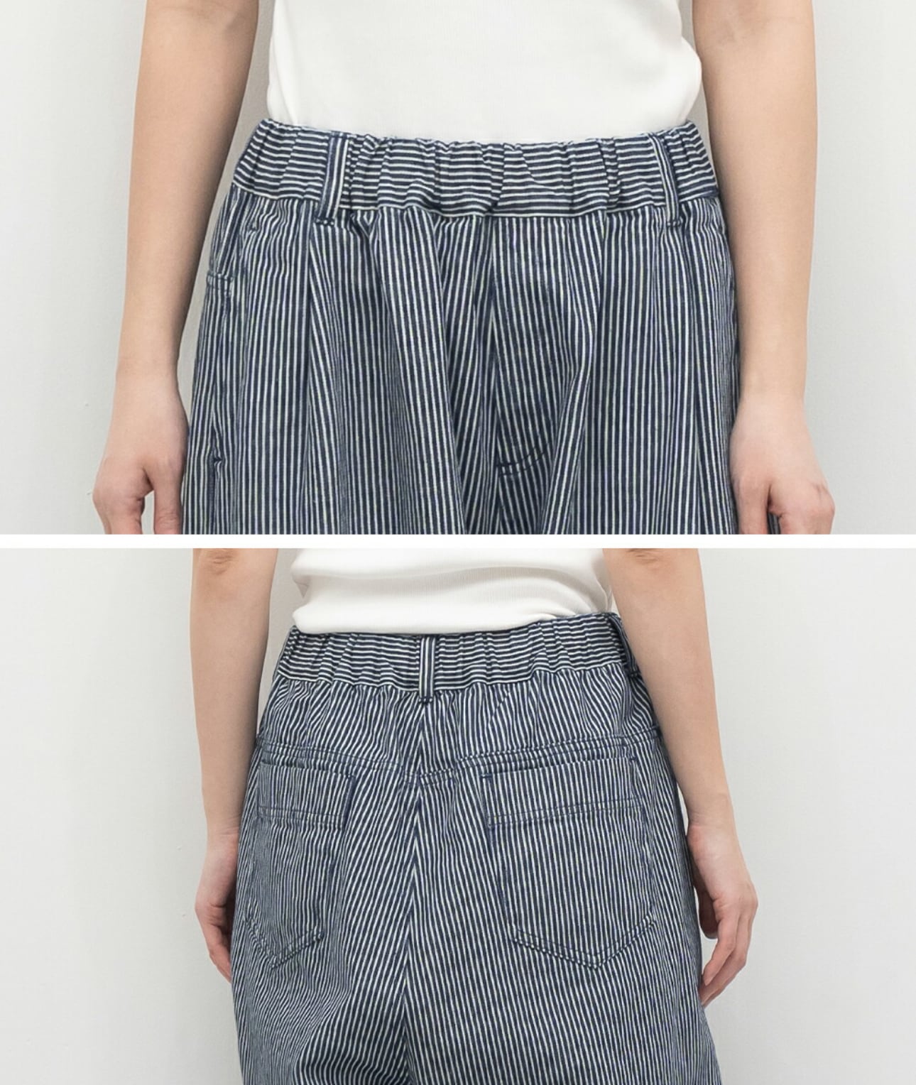 ウエストはゴム仕様でリラックスした履き心地で、内紐でサイズ調整も可能です。