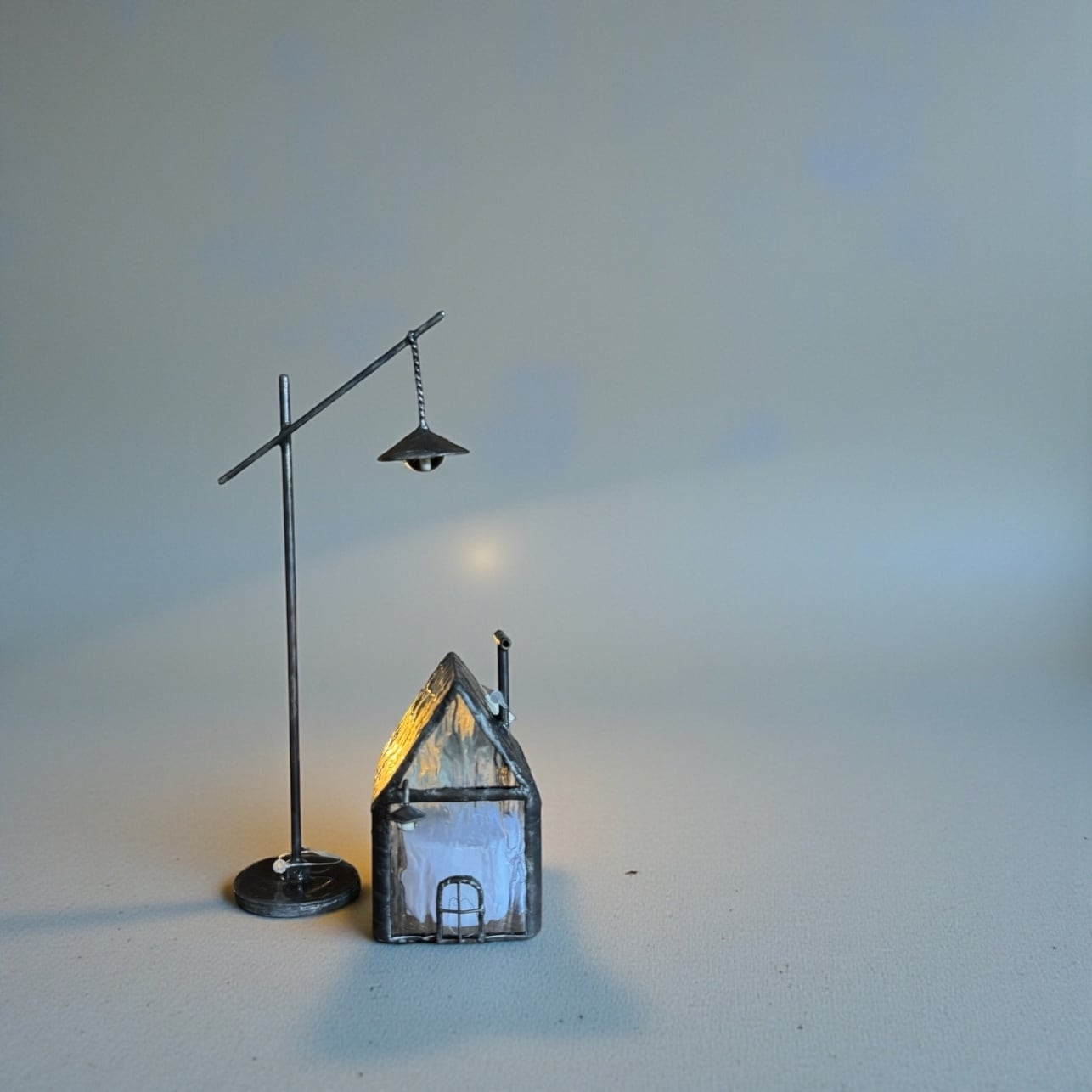 ブランド ガラス雑貨作家 Vetro 鉄のランプ ハンドメイド 点灯しません。 飾りです。 約高さ17cm ランプのみになります。