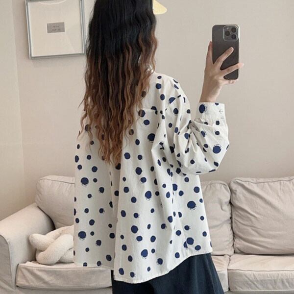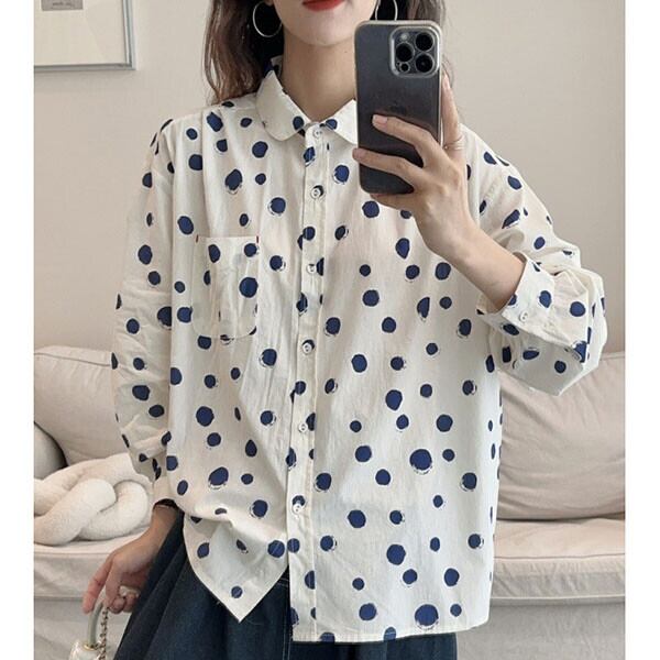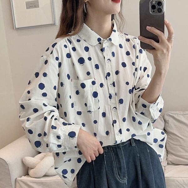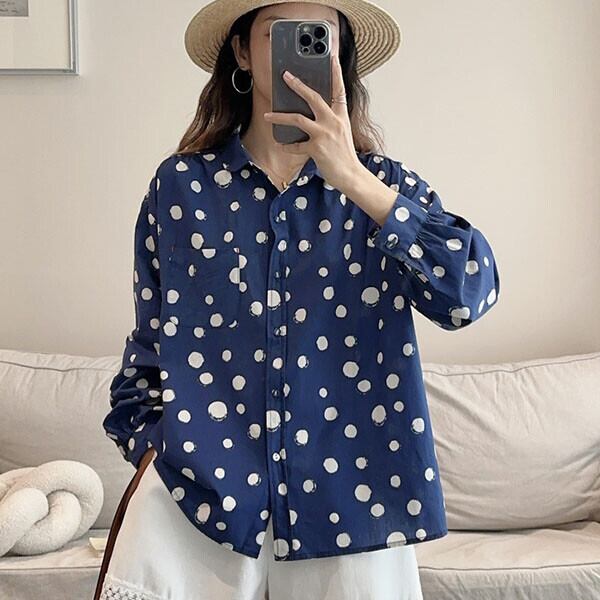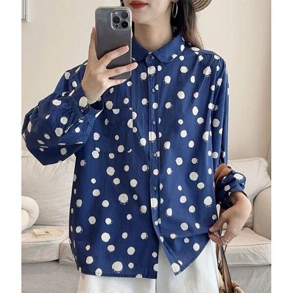 ドットプリントシャツ 身幅64 着丈66 【素材・成分】 コットン