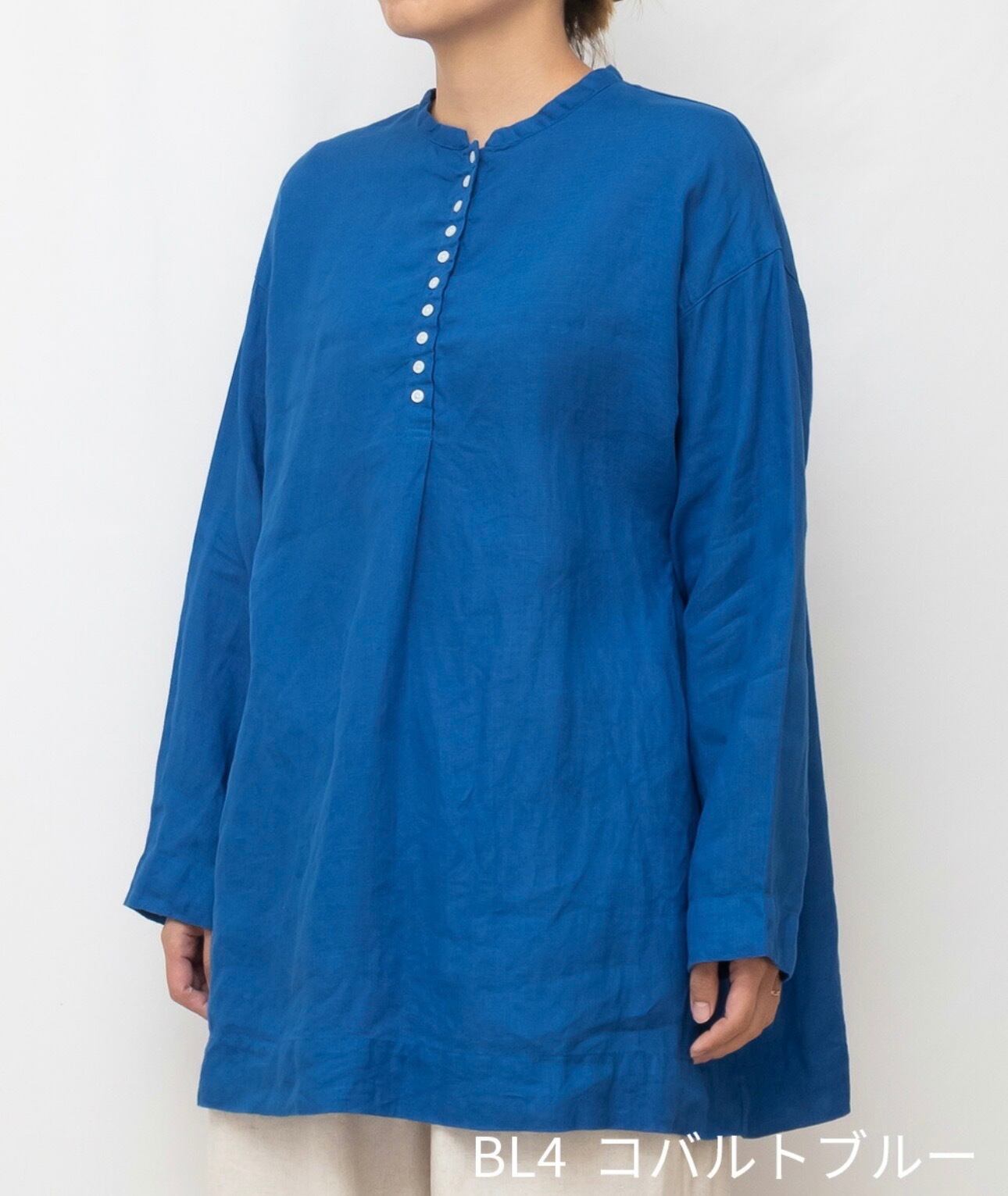 SUN VALLEY サンバレー / 製品染め リネン100% 多釦 チュニック