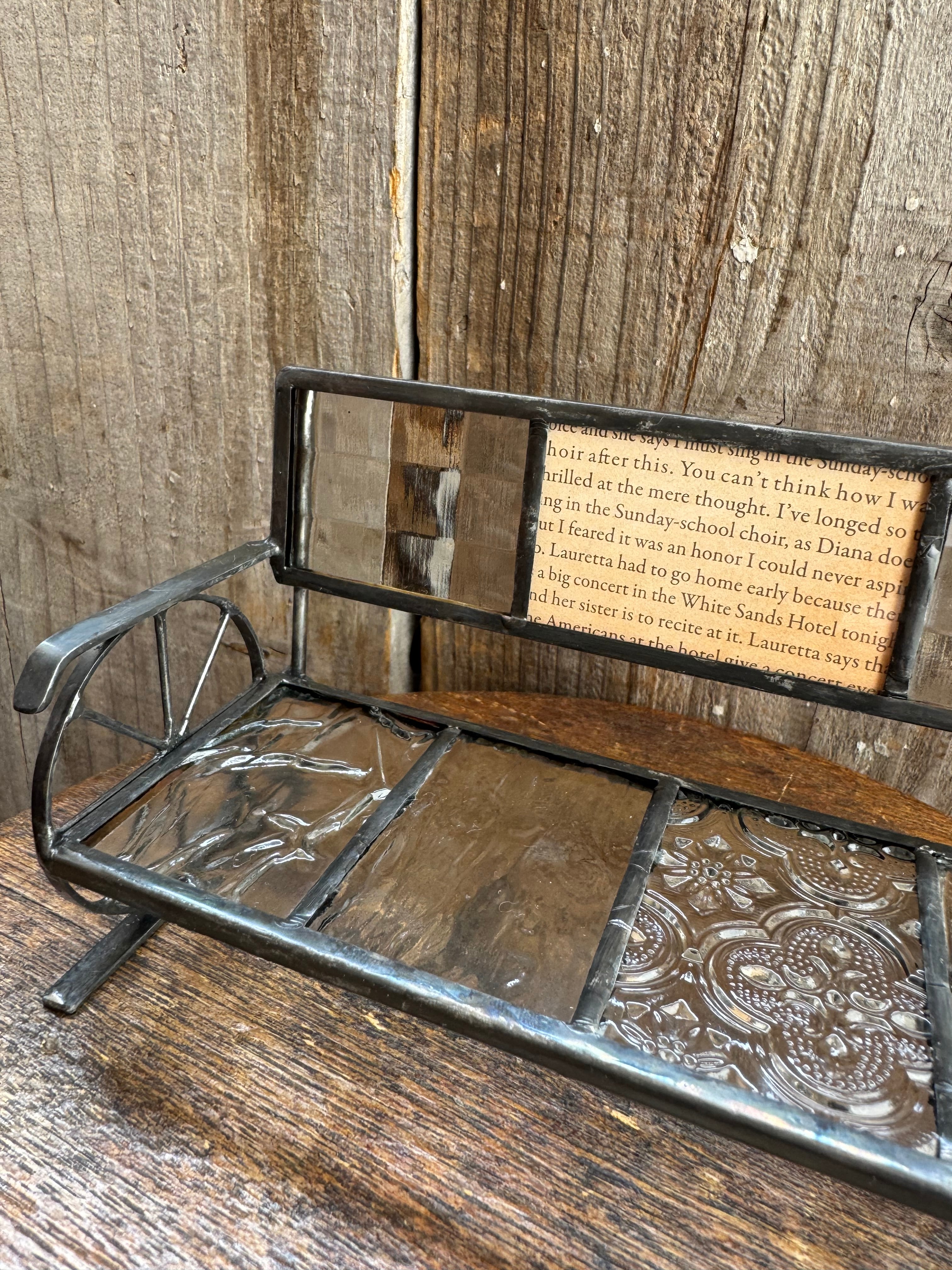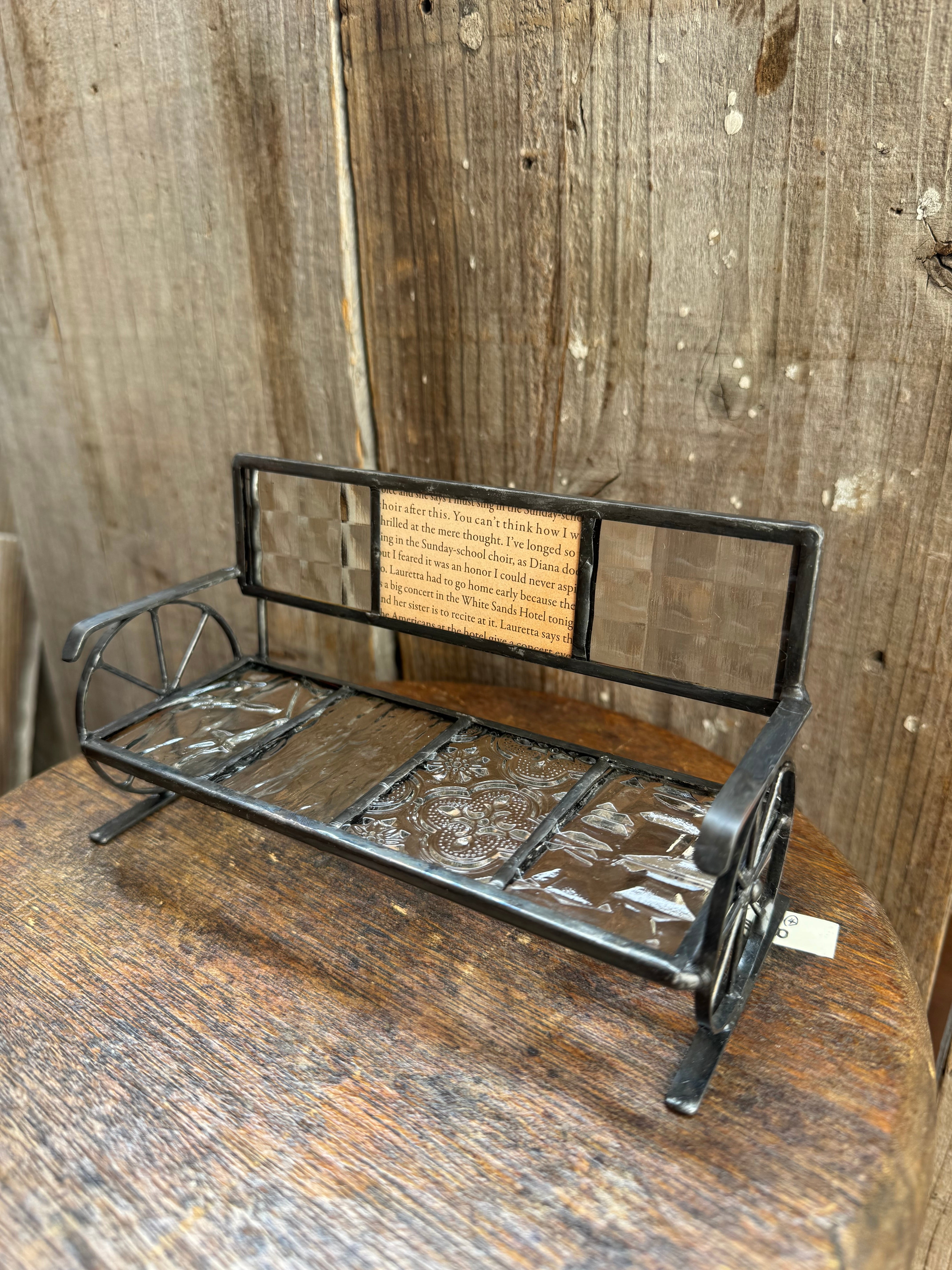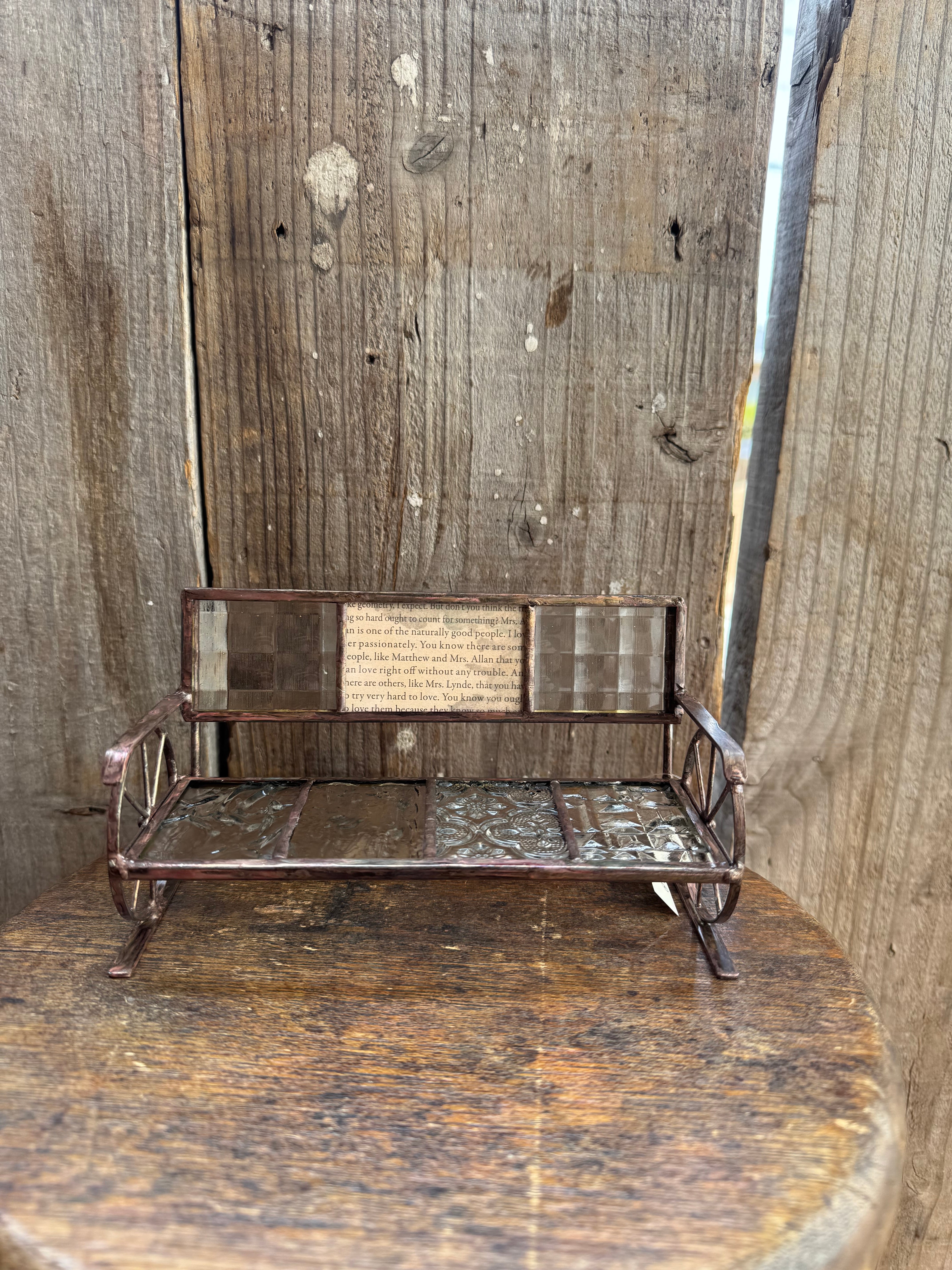 ブランド ガラス雑貨作家 Vetro ステンドグラスベンチ ハンドメイド 横17cm 高さ9cm 奥行き8cm ベンチのみの販売になります