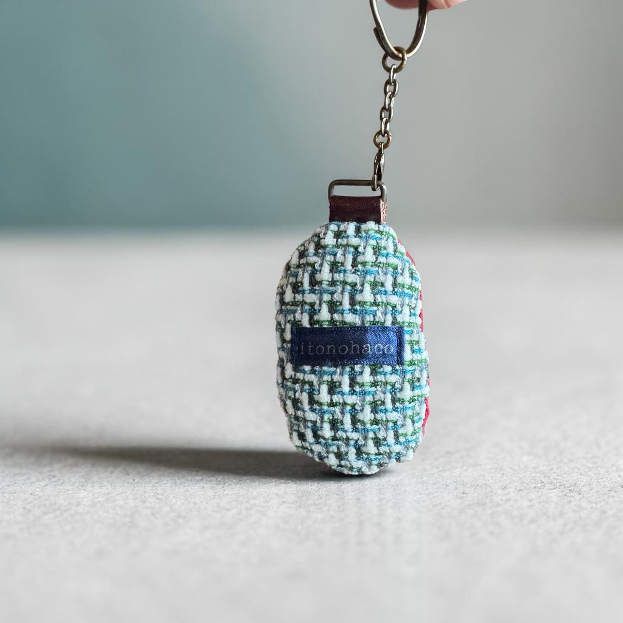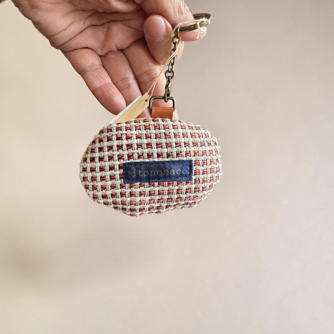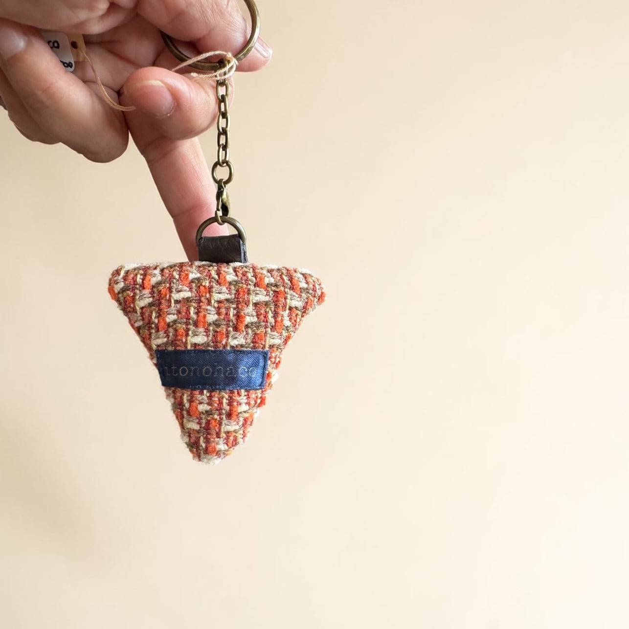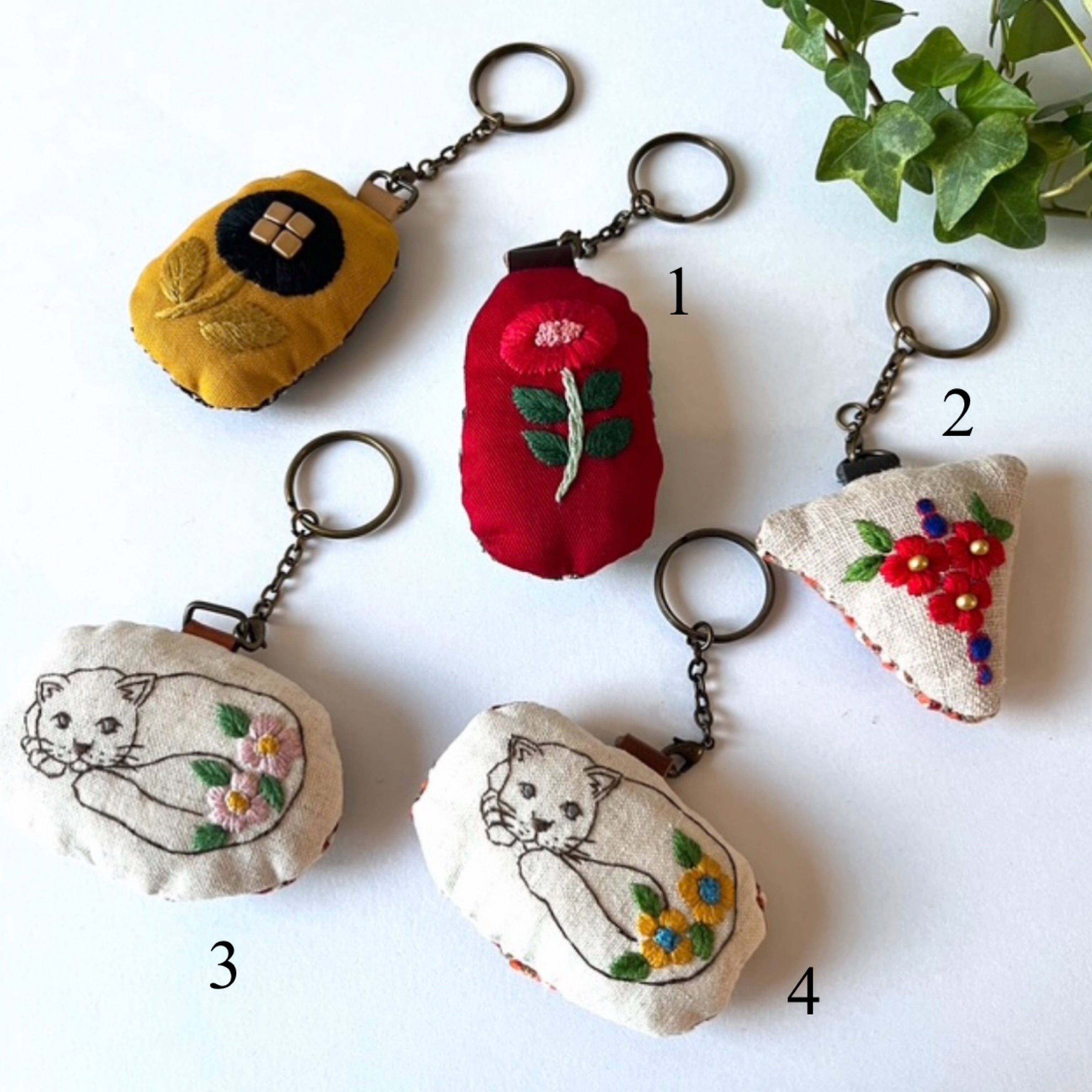 ブランド itonohaco 手刺繍キーホルダー 中綿あり 猫は横9cm 赤い花は長さ10cm 三角花は横7cm