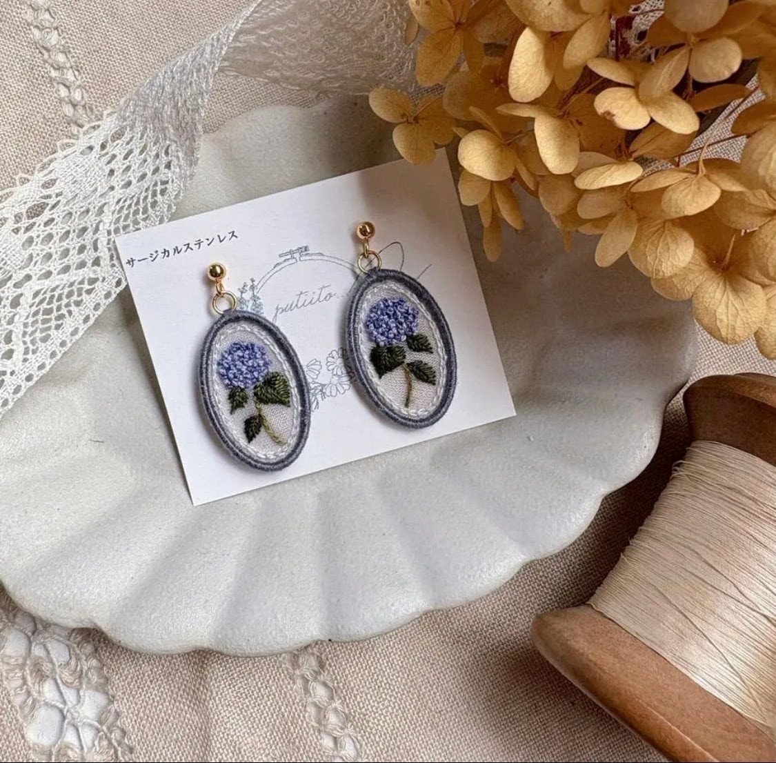 手刺繍のイヤーアクセサリー
