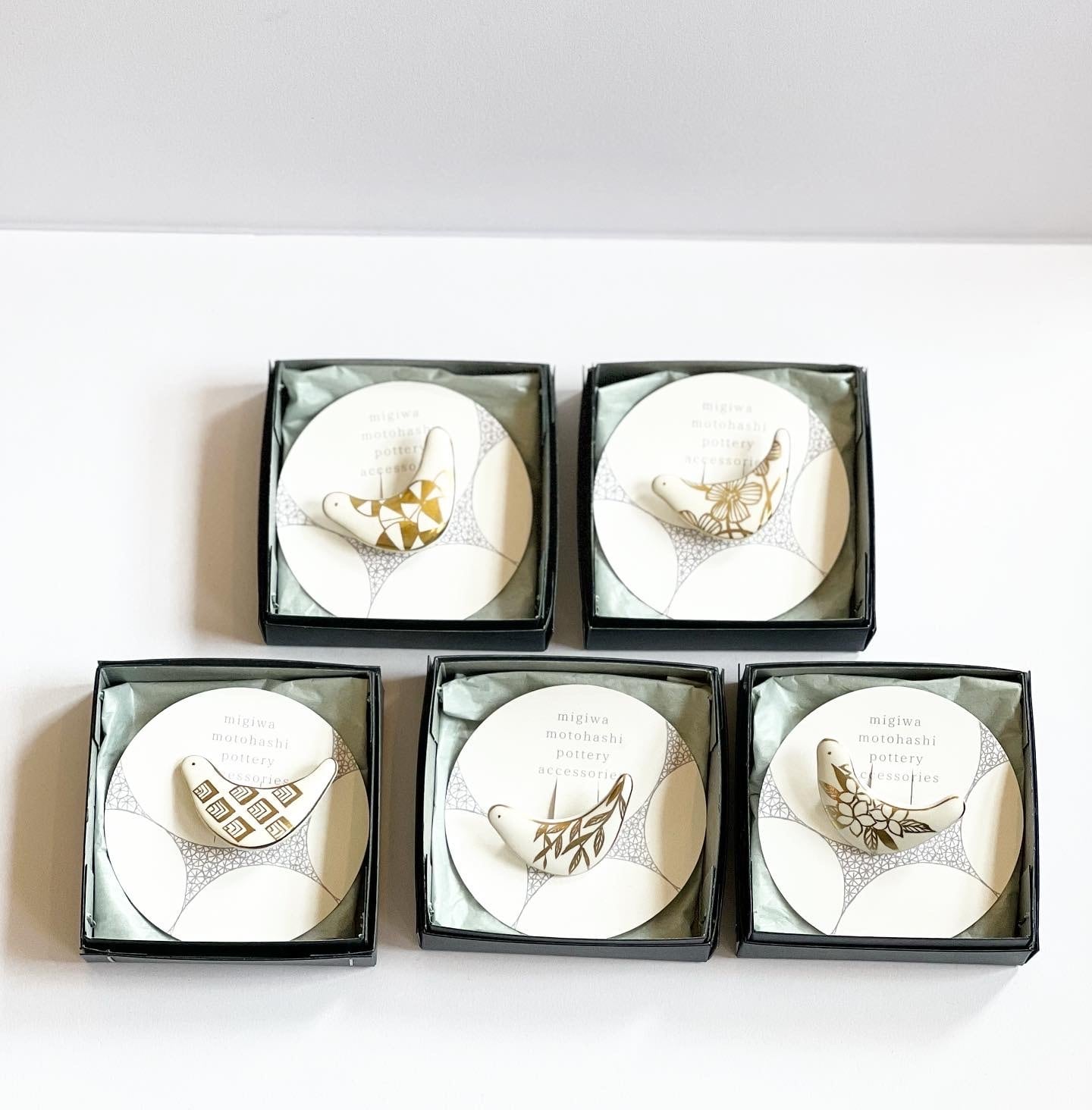 migiwaさんの陶器ブローチ 1つ1つ金で絵を描き3回焼き とても綺麗な素敵なブローチです。 4.3cm×3.3cm