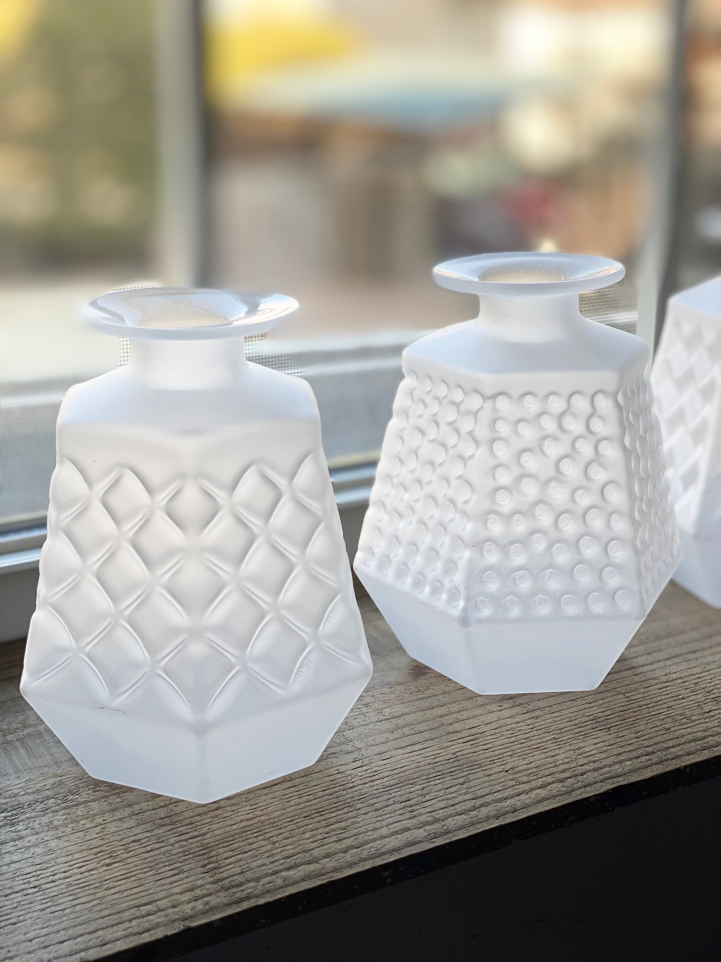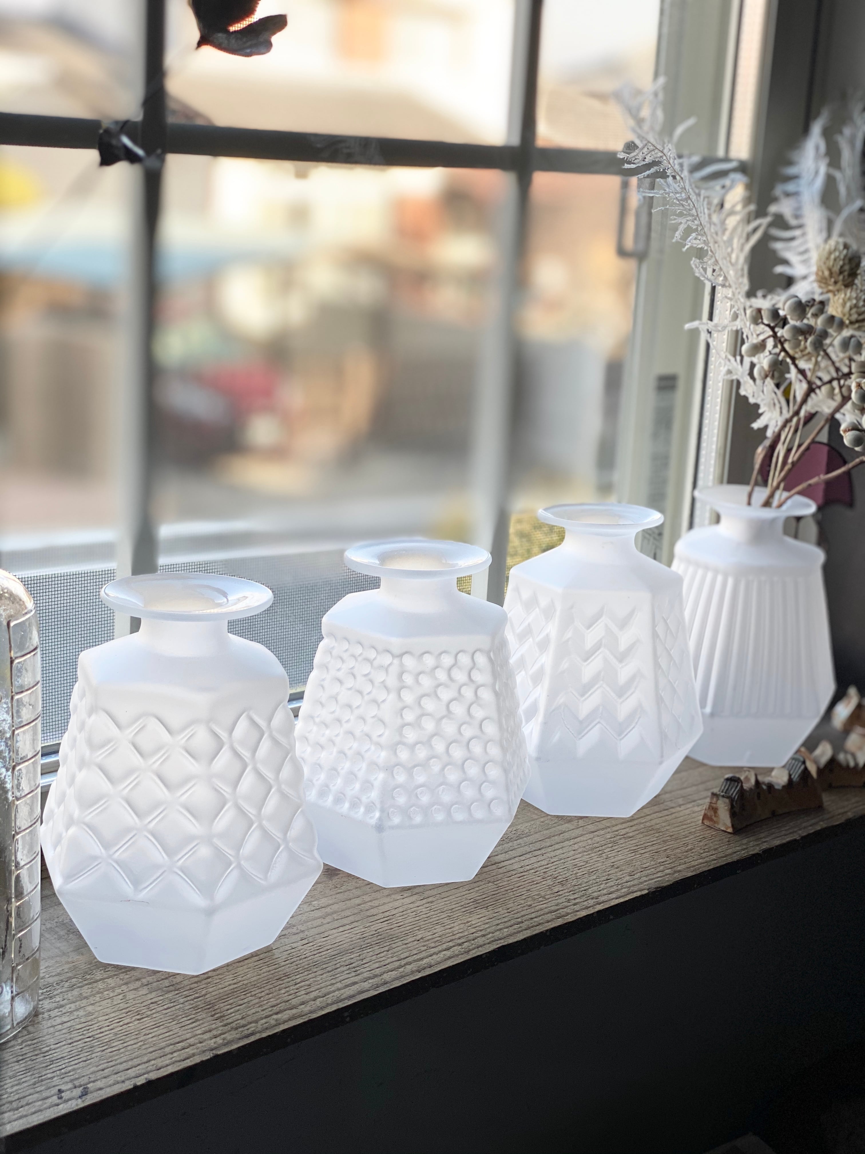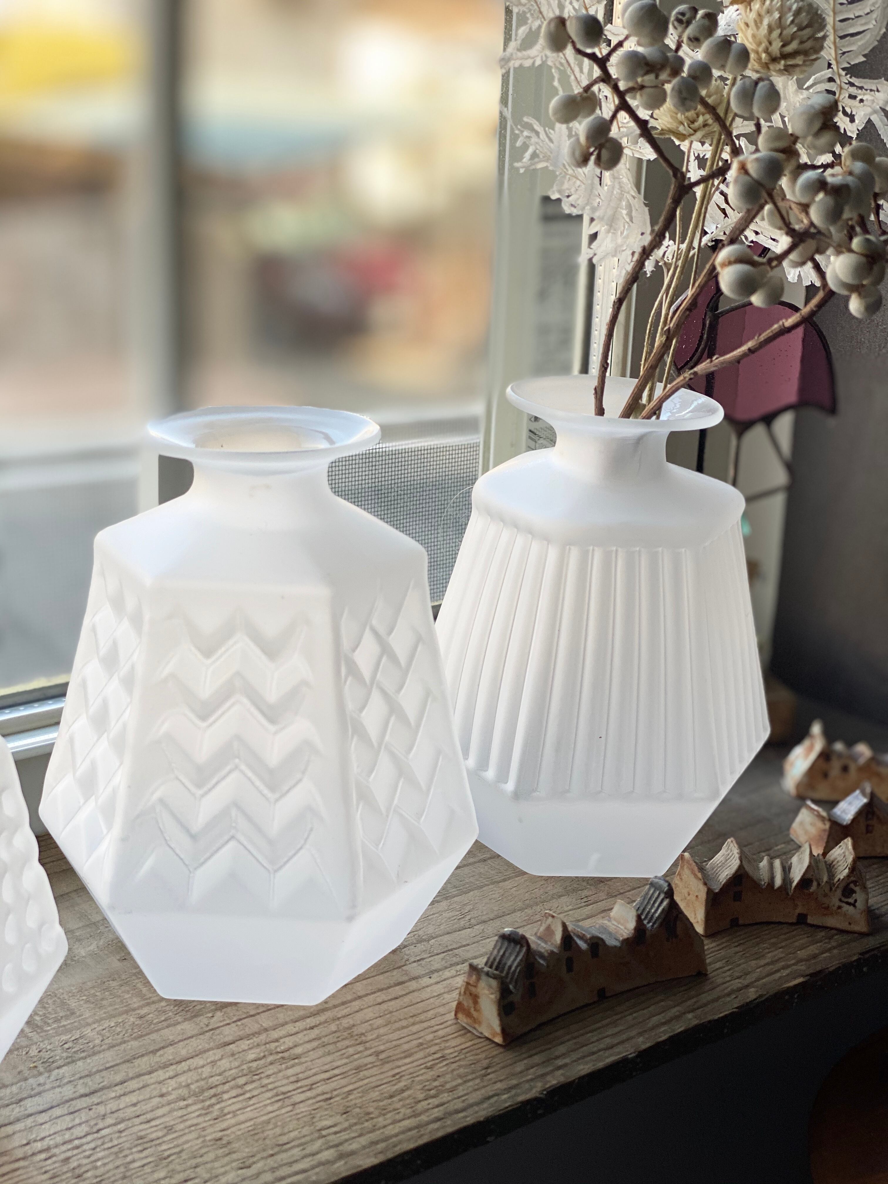 手触りが角砂糖の断面のようなフロストのフラワーベース。