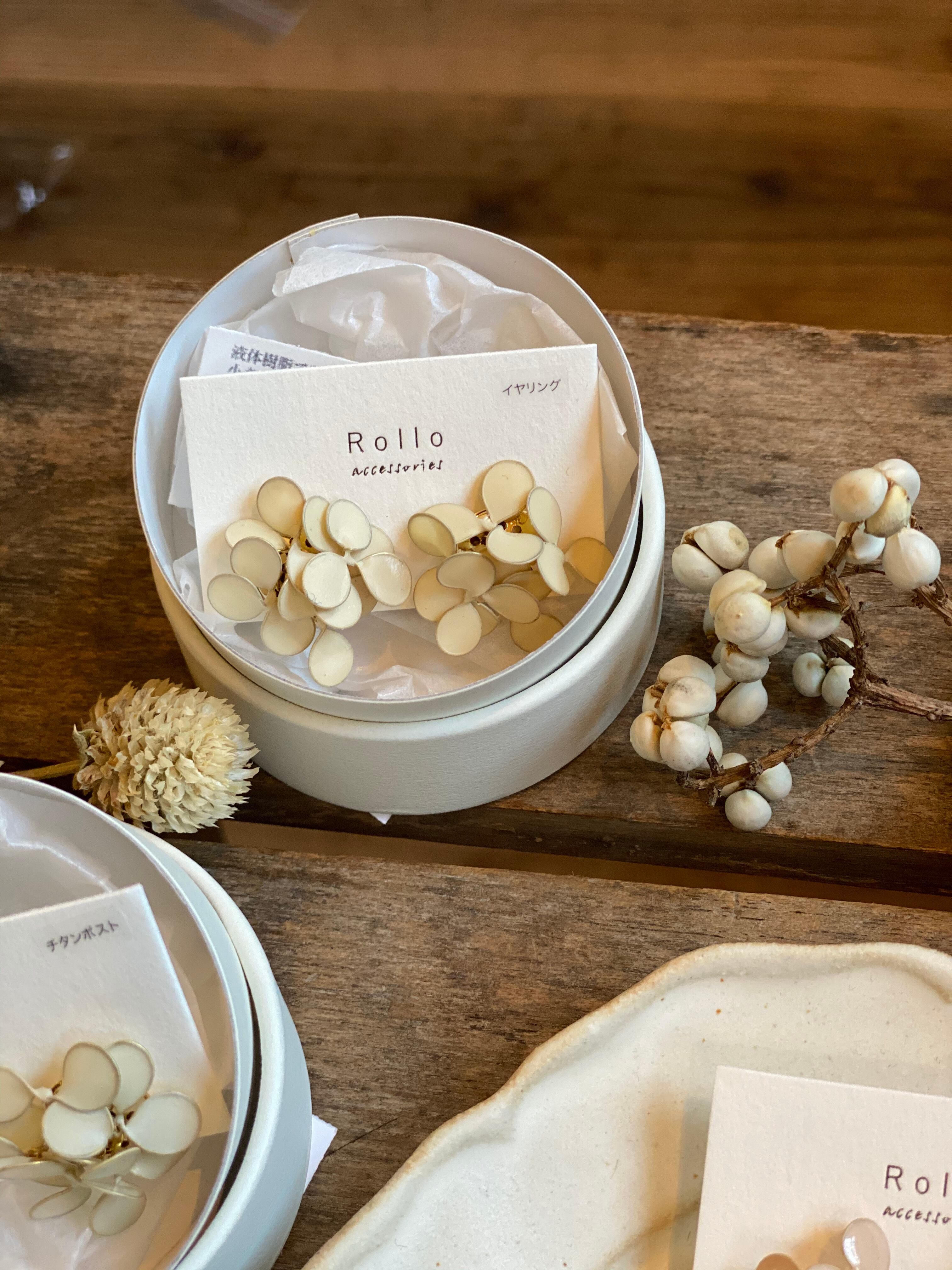 ブランド Rollo ワイヤーディップアクセサリー チタンポスト ねじ式イヤリング 約2.5cm カフェオレ色とピンクはやや光沢あり 他はマットです。