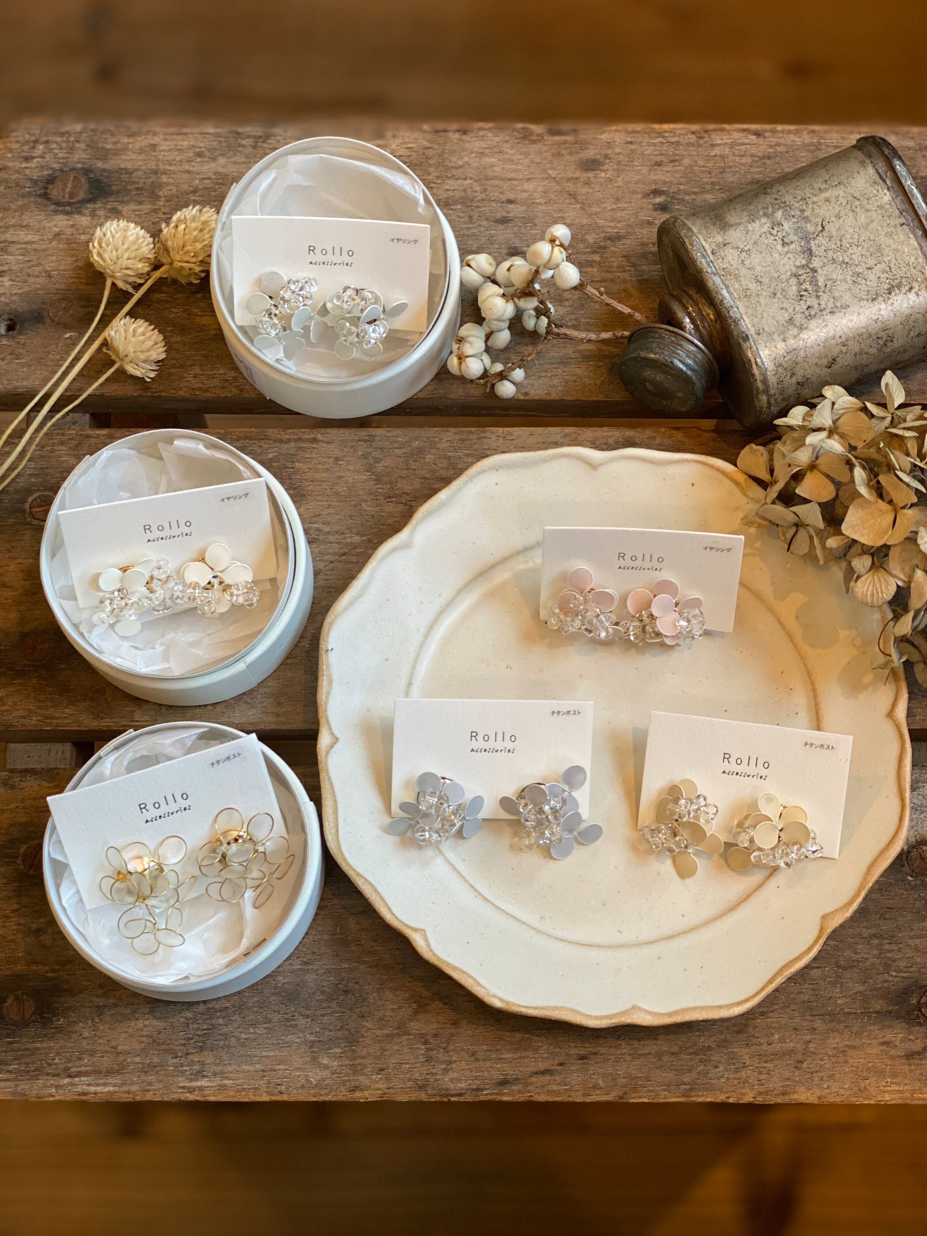 ブランド Rollo ワイヤーディップアクセサリー チタンポスト ねじ式イヤリング 約2.5cm マットなディップワイヤーと 透明ビーズを合わせたとてもお勧めアクセサリーです。
