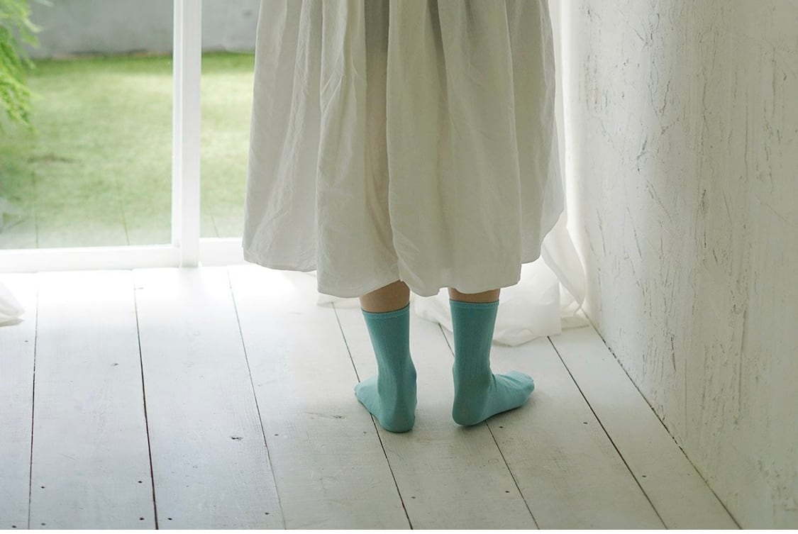 使用を繰り返しても品質が維持する上質なウォッシャブルシルクを使用したクルーソックス。肌にやさしく、やわらかでしっとりしたシルクは吸放湿性が高く滑らかな履き心地です。