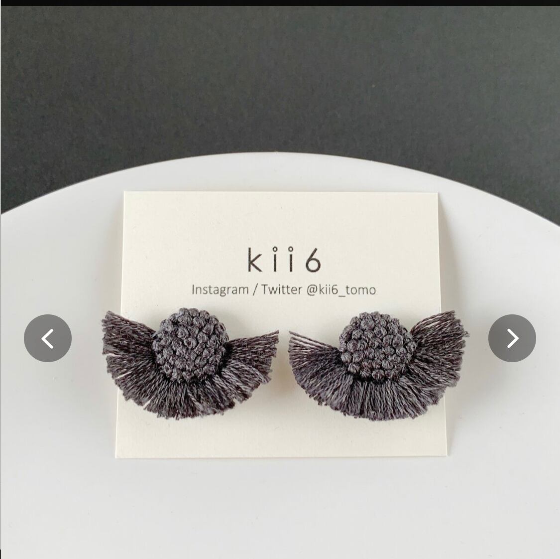 刺繍糸の柔らかい風合いに優しい雰囲気を感じられ、大人っぽいチャコールが耳元や顔まわりを上品に彩ります。