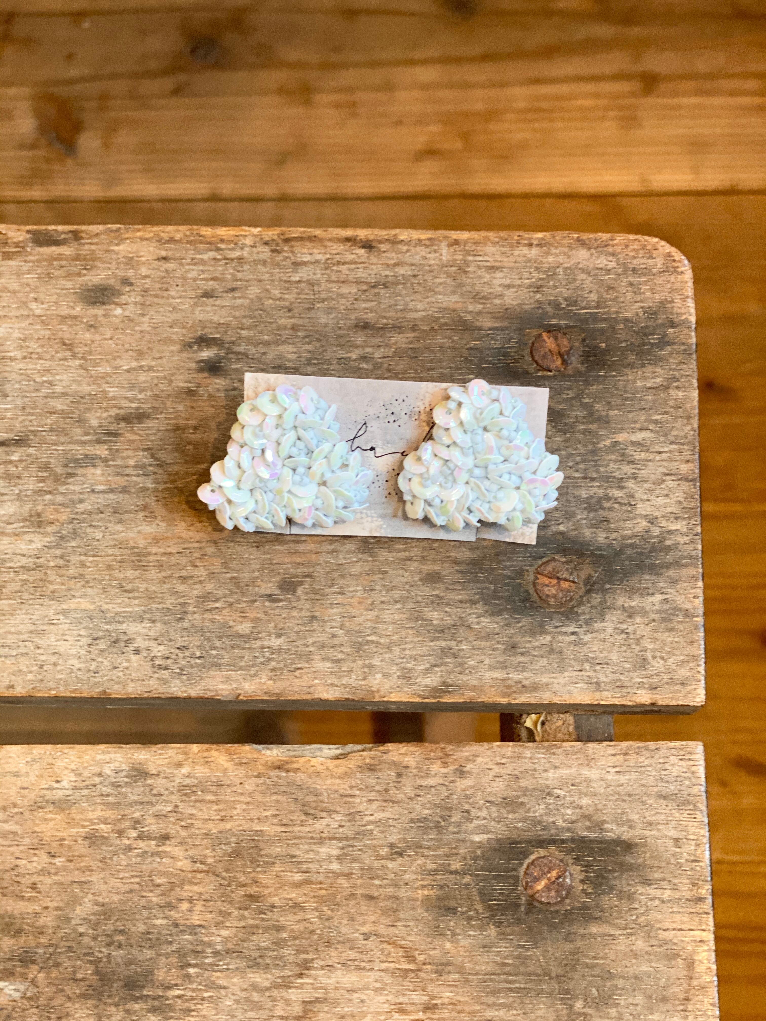 ブランド hachi ビーズ刺繍イヤリング 貝殻のようにキラキラと光る アイスブルー系のイヤリング 3cm ねじ式イヤリング