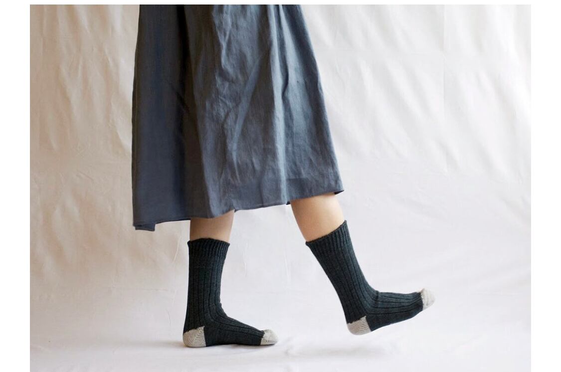 ヴァージンコットンを100%使用した、履けば履くほど味わいのでる環境にやさしい靴下。コットンを紡績する際、糸にならなかった短繊維の落ち綿のヴァージンコットンを特殊な紡績機にかけて糸にしました。短繊維ならではの履けば履くほど風合いが出てきて、まるでジーンズが味わいが出てくるようにヴィンテージ感が出てきます。履けば履くほど愛おしくなる、愛着がわくそんな靴下です。染め方も通常の液体に原紙を付ける染め方ではなく、染料のカプセルを糸にまぶし、蒸気を当てることでカプセルを弾けさせてランダムに染め付けるスペック染めをしています。スペック染めによるムラ感はよりヴィンテージ感を高めています。履けば履くほど、風合い、色味が変化し、自分の相棒になるような靴下です。