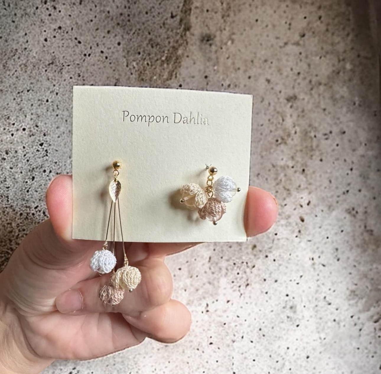 ブランド pompon dahlia 細い糸をしっかりと手編みでパーツを編み アクセサリーに仕立てられてます。 ねじ式イヤリング チタンポストピアス 繊細に編まれたパーツは硬くコーティングしてありますので 形崩れはしません。 モチーフ2cm×1.5cm 2cm×3.5cm